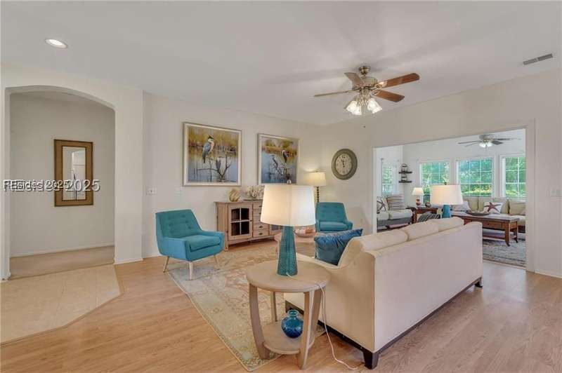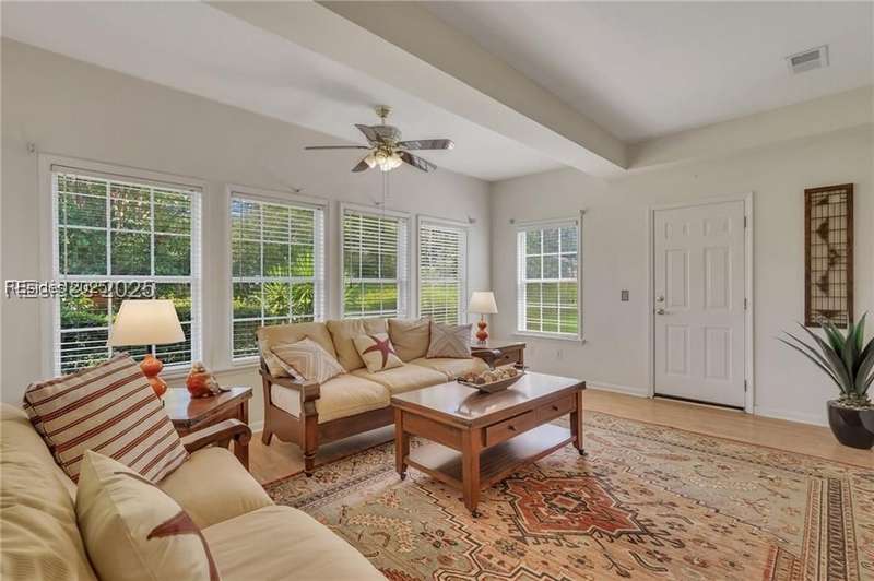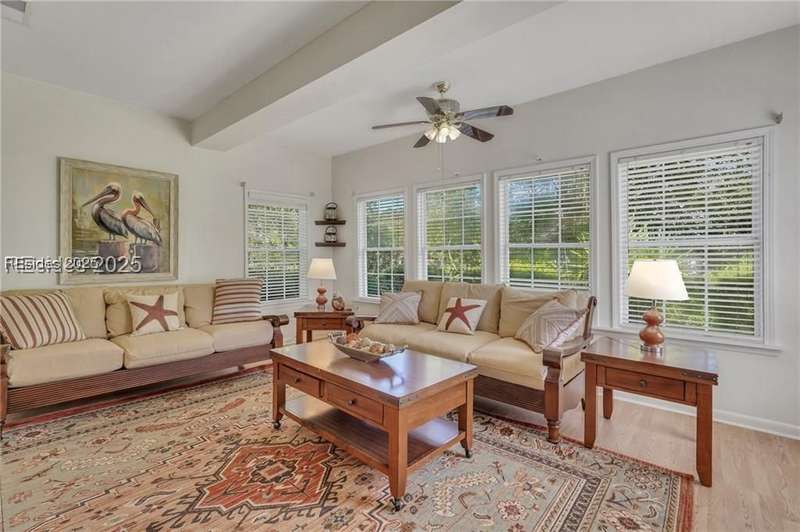 REDUCED PRICE! Nestled in the SUN CITY HILTON HEAD community, this Camden/Shenandoah 2 BD/2BA w/ flex space sits on a peaceful cul de sac. Inside, a spacious living/dining area flows into a large Carolina Room, offering serene views of the landscaped backyard. The kitchen/dining area overlooks this scenic space as well. Enjoy the patio's private retreat feeling, perfect for savoring your morning coffee. The primary bedroom boasts an en suite bathroom. Sun City Hilton Head in Bluffton, SC, is a premier 55+ community spanning over 5,000 acres, offering an unmatched resort-style lifestyle. Residents enjoy 54 holes of golf across three scenic courses, six pools (including indoor lap and leisure pools), and three fully equipped fitness centers with classes and studios. The sports park offers tennis, pickleball, bocce, softball, volleyball, croquet, and more. Social and creative outlets abound with a ballroom, 16,000 sq ft performing arts theater, arts and crafts studios, woodworking shop, billiards, card rooms, and a library. Outdoor enthusiasts appreciate the Lake Somerset and Riverbend Docks, fishing, miles of walking and nature trails, community gardens, and three dog parks. There are over 150 clubs covering everything from arts and music to technology and lifelong learning. Additional amenities include on-site restaurants, RV and boat storage, and a secure, gated environment with convenient access to Hilton Head beaches, Historic Savannah and Charleston along with local shopping, dining, and healthcare. Sun City is also expanding with a new multimillion-dollar resort style amenity center coming soon!