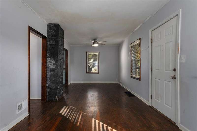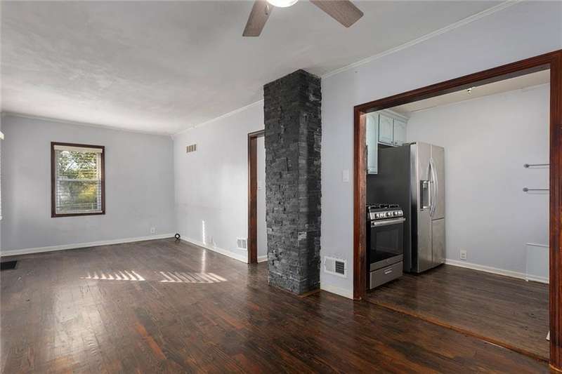 TRUE RANCH SITTING ON AN OVERSIZED TREED LOT. CLOSE TO MAJOR HIGHWAYS. WOULD MAKE A GREAT STARTER HOME. JUST NEEDS A LITTLE TLC. SPACIOUS 1 CAR DETACHED GARAGE WITH ELECTICITY. 2 OUTDOOR LIVING SPACES. ALL ORIGINAL HARDWOOD FLOORS AND NEWER STAINLESS APPLIANCES INCLUDING WASHER AND DRYER. NEWER KITCHEN AND BATH UPDATES WITHIN THE PAST 6 YEARS. RADON SYSTEM INSTALLED. EXTERIOR ENTRANCE TO UNFINISHED BASEMENT FOR ADDED STORAGE. MAIN LEVEL LAUNDRY AREA. WHY RENT WHEN YOU CAN OWN THIS DARLING HOME WITH PLENTY OF SPACE TO ADD ON. HOME BEING SOLD IN AS IS CONDITION BUT MAIN COMPONENTS ARE ALL IN GOOD SHAPE. COVERED PATIO AND COVERED FRONT PORCH AND VINYL SIDING EXTERIOR.FRESHLY PAINTED INTERIOR WITH ALL NEW CEILING FANS AND LIGHT FIXTURES. MOVE IN READY!