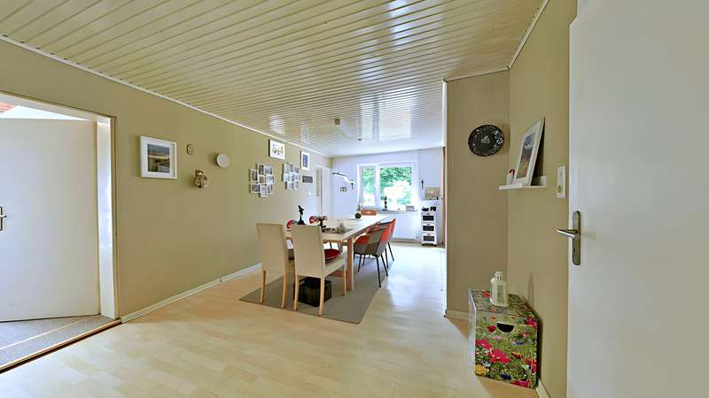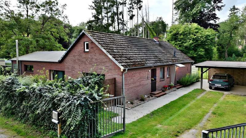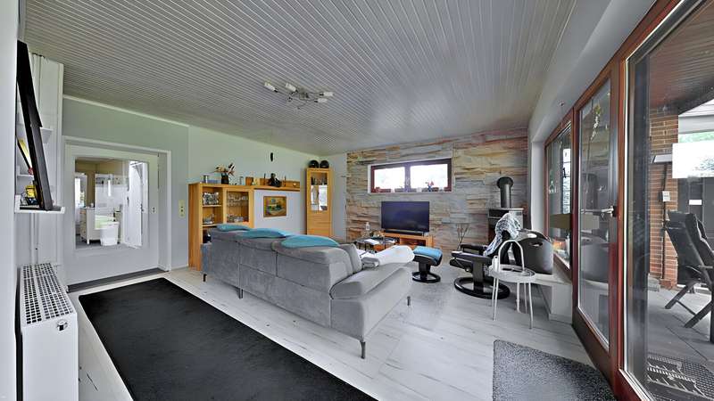 This well-kept detached house with a generous living space of approx. 155 m² offers a wide range of possible uses and will appeal in particular to people who appreciate a well-thought-out room concept on a spacious plot. The house was originally built in the 1950s as a vacation home and extensively extended in 1979. It is situated on a plot of approx. 5,880 m², which offers both privacy and numerous options for use, such as for new construction projects - a corresponding development plan is already in place. The interior of the house offers a total of six rooms. Two to three bedrooms offer sufficient space for individual use, while two bathrooms combine sophistication and functionality. The living room with its wood-burning stove forms the heart of the house, providing pleasant warmth and adding a modern touch with the new stainless steel pipe. The central heating system, which was modernized in 2017, ensures a reliable and efficient heat supply. The room layout is clear and functional: in addition to the spacious living area, the open-plan living and dining area, bedrooms and bathrooms are all on one level, allowing for short distances and a comfortable living experience. Another special feature is the attic, which can be used as a reserve area or additional storage space. The fittings are of a solid standard; they offer a reliable basis for immediate occupancy and individual design requirements. The spacious plot opens up a wide range of possibilities for use and design. Whether you are a hobby gardener, animal lover or anyone who enjoys spending their free time outdoors - there are numerous options here for realizing your own ideas. The location of the house is characterized by its natural surroundings and easy accessibility. Shopping facilities, schools and public transport links are just a few minutes away. This offer thus combines the advantages of a spacious property with a solid infrastructure. In short, this detached house will appeal to those who value sufficient space, a flexible use of space and a large plot of land. The solid substance of the building, the ongoing maintenance and modernization - including the new heating system - and the possibility to extend make this property interesting for families as well as couples or individuals. We are happy to provide further information or arrange a viewing appointment. Let us convince you of the possibilities of this property during a personal viewing.