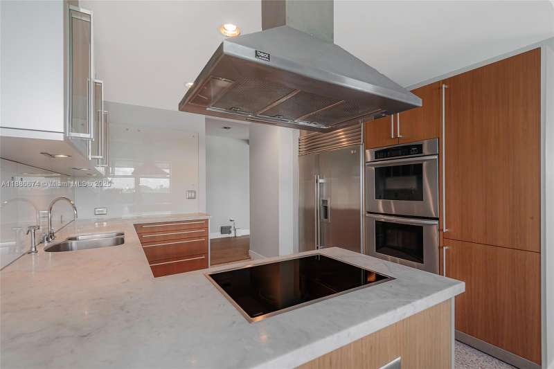 Picture yourself living the life in this luxurious private island surrounded by blue skies and serene water views off millionaires row. Spacious light filled unit with 2 balconies, freshly painted, with newly installed wood floors. Quality throughout the moment you drive onto Allison island and step into your new home. Gorgeous Chef's kitchen includes Bulthaup wood cabinets, 42" Sub Zero, Thermador double ovens, and carrera marble countertops. Ensuite bathrooms, ample storage throughout, separate laundry room, and a powder room for guests. Waterfront promenade, 2 pools, hot tub, sauna, steam room, fully equipped gym, BBQ, kiddie playroom, cafe and so much more. Free valet, 2 covered parking spaces, internet and cable included.