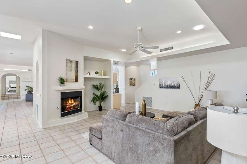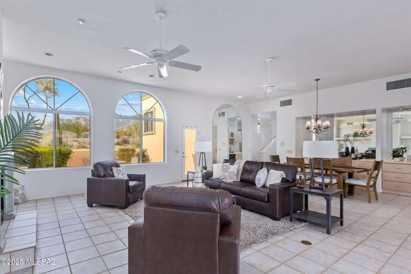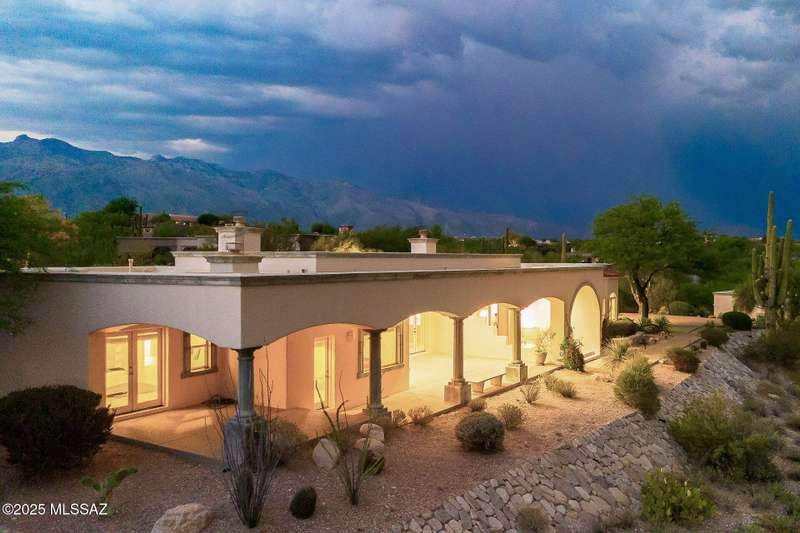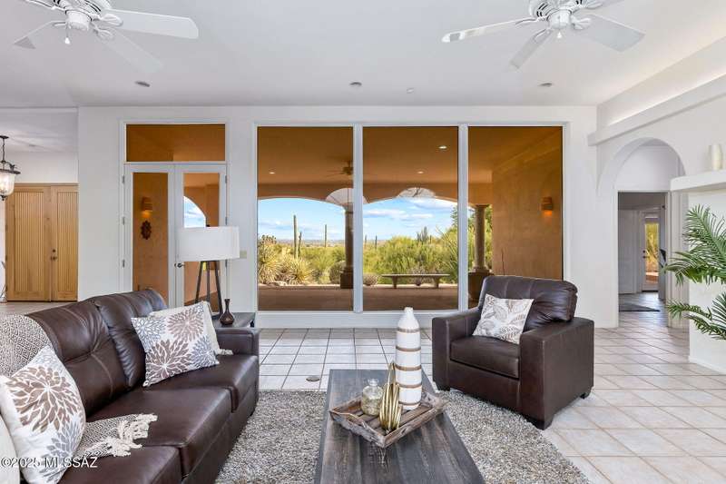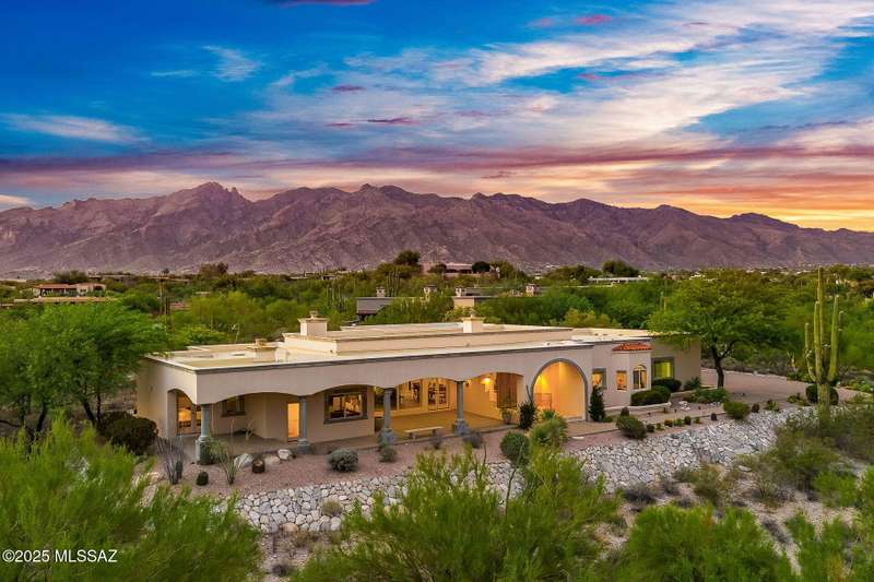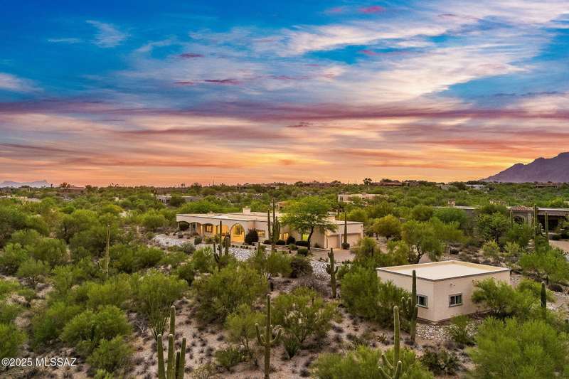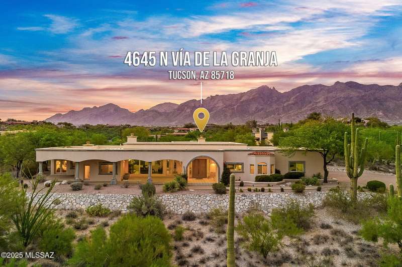 In the exclusive, guard gated Catalina Foothills Estates #10, this grand residence stands as a rare offering-- the convergence of iconic Tucson scenery, architectural scale, and distinct opportunity! Here, the desert stretches out before you, the city glimmers in the distance, and the Catalina Mountains rise in commanding beauty behind! From the moment you step inside, the soaring ceilings and walls of glass draw your gaze outward, framing light-filled vistas that change with every hour of the day. The split floor plan creates an ideal balance of openness and privacy, with a spacious primary wing and three additional bedrooms--each with its own bath--perfect for guests and family alike. Privacy abounds.