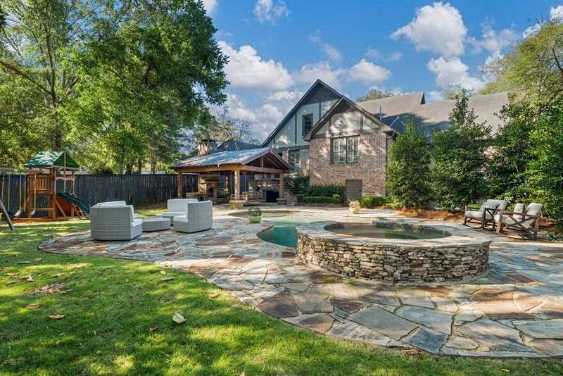 Built in 2004, this stunning custom home perfectly blends the warmth and character of classic Midtown living with every modern comfort today's discerning buyer desires. Enter through a custom Tudor-style oak door into a gracious main level featuring a spacious dining room, a separate living room, and a charming den complete with custom built-in bookshelves, a beautiful fireplace, and access to a cozy side porch. The main level also includes a luxurious primary suite offering a renovated bath with new countertops and cabinet doors, and a custom-built master closet. The gourmet kitchen-completely renovated in 2023 and freshly repainted and updated in 2024-is a true showpiece for cooking and entertaining. It showcases high-end appliances, custom cabinetry, new porcelain tile floors, and stunning countertops. A convenient side entry with a drop zone connects the kitchen to a custom two-car carport, complete with wrought-iron fencing and access to the backyard. Upstairs, two spacious south-facing bedrooms each feature new walk-in closets and share a beautifully renovated bathroom (2025) with a double vanity. On the north side, a comfortable family room and a fourth bedroom-or versatile bonus space-offer flexibility, all with new carpet and custom storage. Throughout the home, high ceilings, gleaming hardwood floors, plantation shutters, and exquisite millwork enhance its refined yet welcoming atmosphere. Outdoors, enjoy your own private retreat with a saltwater pool and hot tub surrounded by stonework (added in 2013), alongside a spacious outdoor living area complete with fireplace and grilling station-ideal for entertaining or unwinding year-round. Every detail of this exceptional property reflects quality craftsmanship, thoughtful updates, and timeless style. Schedule your private tour of 1706 Stark Avenue today.