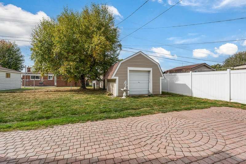 Great curb appeal! Brick ranch with maintenance free exterior, Anderson clad replacement windows. Fenced yard with large shed and paver patio. Formal living room, kitchen includes appliances, new garbage disposal, attached dining area opens to family room with gas or woodburning fireplace, door wall to rear yard. First floor laundry includes washer and dryer, 2nd full bath off mud room/laundry area. Three bedrooms with hardwood exposed in 2 close to hall bath. Air conditioning 6 yrs. Partially finished basement.