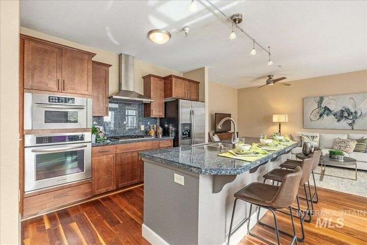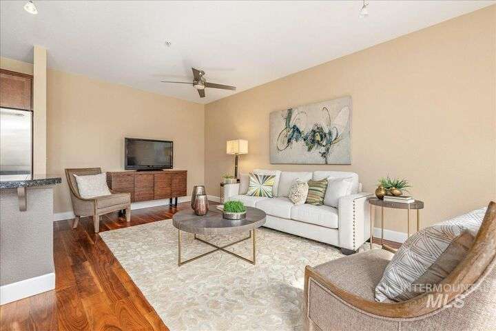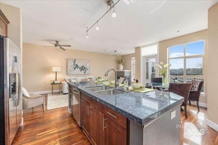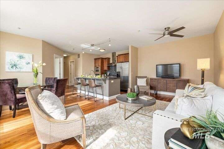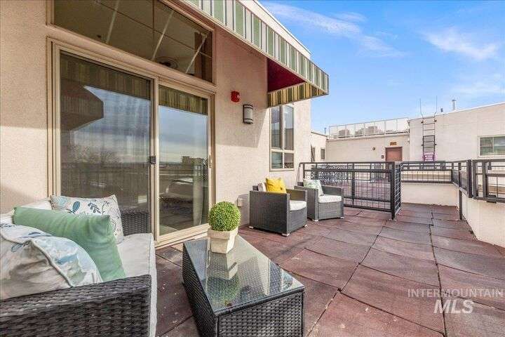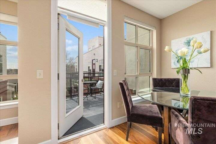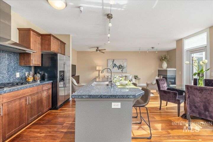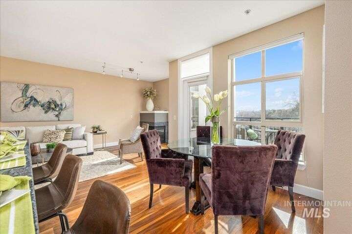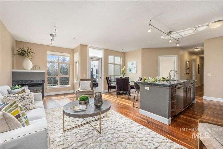 Rare Downtown Boise Penthouse – Stunning City & Mountain Views! Discover luxury living in this rarely available 3-bedroom, 2-bath penthouse in the heart of downtown Boise! This exceptional condo boasts tall ceilings, an open floor plan, and views from not one, but two private decks—one off the main living area and another from the spacious owner’s suite. The gourmet kitchen features granite countertops, a large island, a gas stove, and stainless steel appliances, perfect for cooking and entertaining. Cozy up by the gas fireplace in the living room, complemented by beautiful walnut wood floors throughout. Enjoy the convenience of two deeded, secure covered parking spaces—a rare find in downtown Boise! Good storage within the unit, easy access to the Greenbelt, shopping, dining, and freeway connections. HOA covers water, sewer, trash, and common area maintenance for hassle-free living. Don’t miss this opportunity to own a piece of Boise’s skyline!
