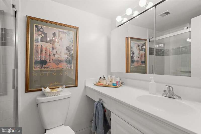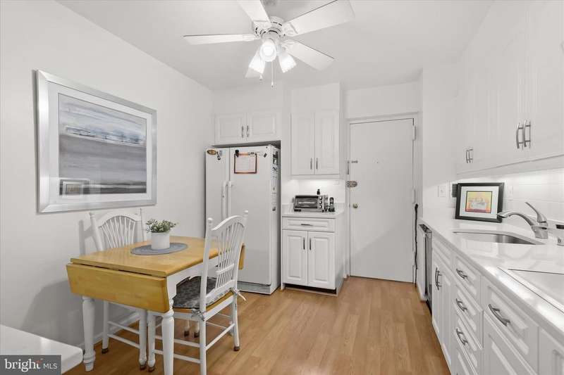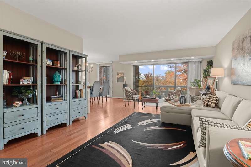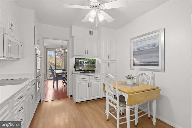 Introducing this spacious two bedroom, two bathroom condo on the fourth floor of the desirable 7 Slade building in the Suburban Oaks community. Filled with natural light and painted in a neutral color palette, this home offers a warm and inviting ambiance. The large living room features rich hardwood floors that continue into the dining area, along with sliding glass doors that open to a private covered balcony with peaceful views. The eat-in kitchen boasts quartz countertops, a tile backsplash, under-cabinet lighting, and appliances including an electric cooktop and double wall oven. Down the hall, the primary bedroom suite offers three closets, one a walk-in, and a recently updated bathroom with a frameless walk-in shower. Completing the home are a second bedroom, a full hall bathroom with laundry, and a hall walk-in closet for added storage. Additional highlights include private gated parking, a doorman in the lobby, and an outdoor community pool. All utilities are included in the monthly condo fee. Ideally located in Pikesville with convenient access to 695, 795, shopping, dining, and public transit options.