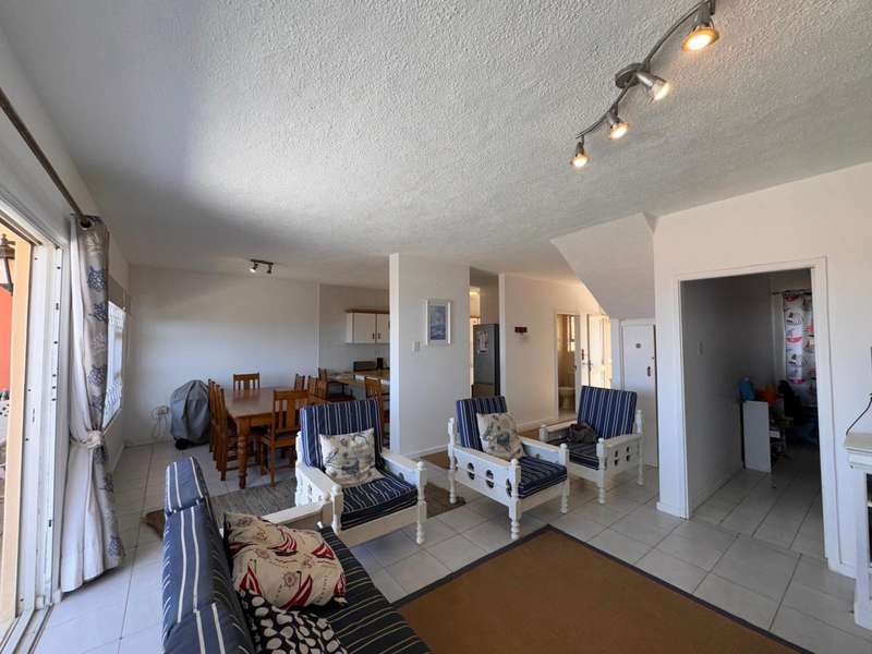 This exceptional duplex with 180-degree sea views is a rare find! The lower level features an open-plan kitchen area which flows seamlessly to the living quarters boasting a sun-filled patio, ideal for entertaining family, and friends and perfect for alfresco dining or Braai season fun times! The accommodation includes three bedrooms located on the upper floor, along with a study (4th bedroom) which is situated downstairs. Two of the bedrooms benefit from a balcony that connects to each other overlooking the ocean, imagine waking up each morning mesmerized by this view! The two bathrooms are located on the upper level, as well as a guest toilet on the lower level. To complete the picture, there's also an automated double lock-up garage with direct access into your home via your private courtyard. Being within walking distance of local shops and beaches alike makes it a sensational spot ideal for beach days out in peace and privacy when desired. Make sure don't miss out and arrange your viewing today!