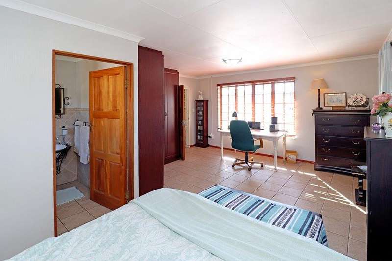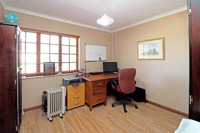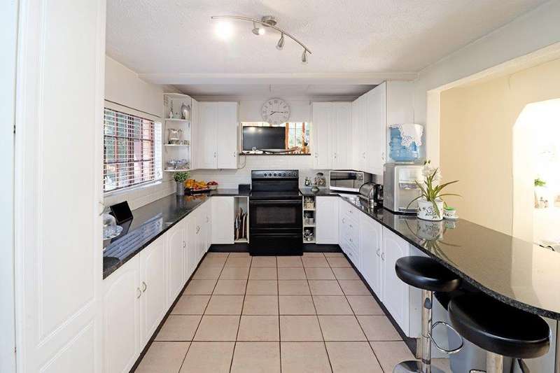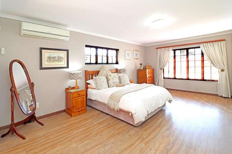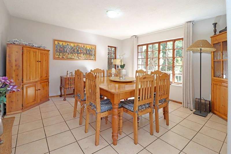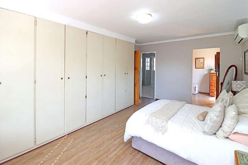 This charming clinker brick family home offers warmth, space, and a host of appealing features. Step inside to a sunny, welcoming living area that flows effortlessly into the garden — ideal for relaxed indoor-outdoor living. The heart of the home is a well-designed kitchen, boasting generous granite countertops, ample cabinetry, and space for a double-door fridge. The adjoining dining area is bathed in natural light and leads into a bright, airy lounge that opens onto a lovely balcony with views of the beautifully maintained garden. Also on the entry level, a guest toilet adds convenience, and the double automated garage provides direct access into the home for ease and security. Downstairs: A cozy family or entertainment room creates a perfect retreat, while the laundry area is discreetly tucked away with direct outdoor access. Upstairs: Three spacious north-facing bedrooms, plus a large study that easily functions as a fourth bedroom or home office. All bedrooms, the study, and passage are finished with elegant laminated flooring. - The first bedroom includes an en-suite bathroom with a shower, basin, and toilet. - The second bedroom, overlooking the garden, is served by a full family bathroom. - The main bedroom is generously proportioned, featuring an air conditioner, a luxurious full en-suite, and its own private sitting area leading out to a secluded balcony with garden views. The covered entertainment patio is perfect for gatherings, overlooking the sparkling swimming pool and lush, landscaped garden. A 500L JoJo tank and an irrigation system help keep everything green and thriving. Garages lead directly into the home. Additional: - Electric fencing - Prepaid electricity - Alarm system - All blinds remain as fixtures Ideally located near top-rated schools, major shopping malls, and key highways, with O.R. Tambo International Airport just 10 minutes away, this home offers comfort, convenience, and timeless charm for the whole family.