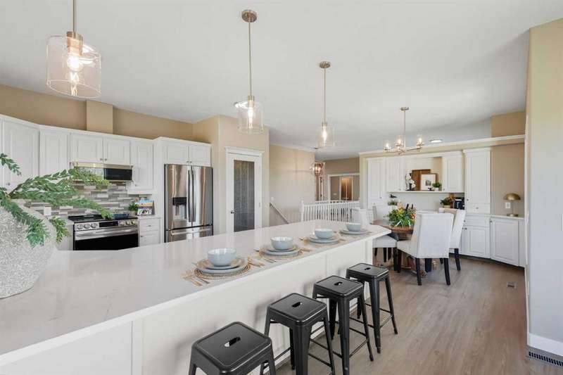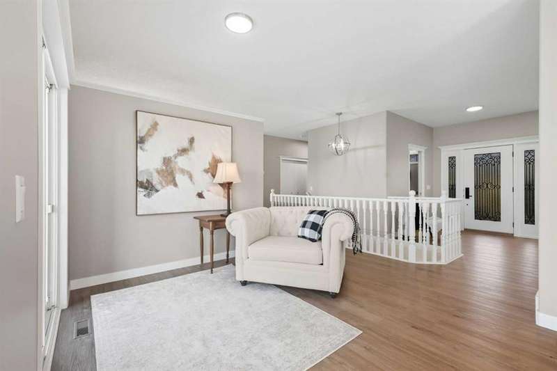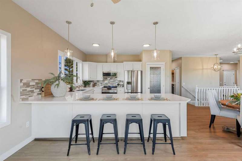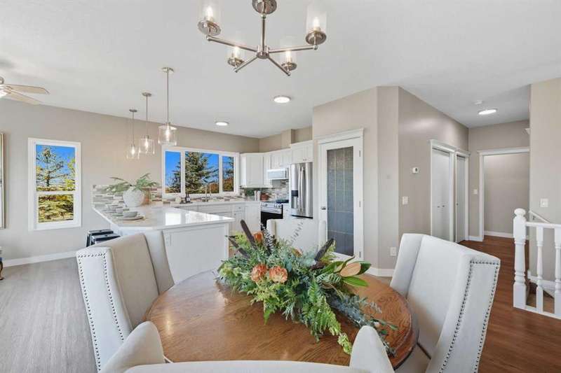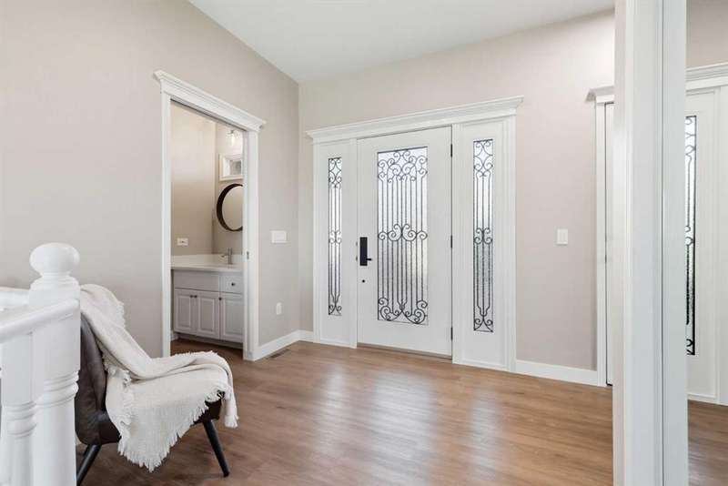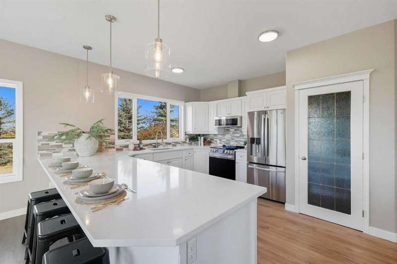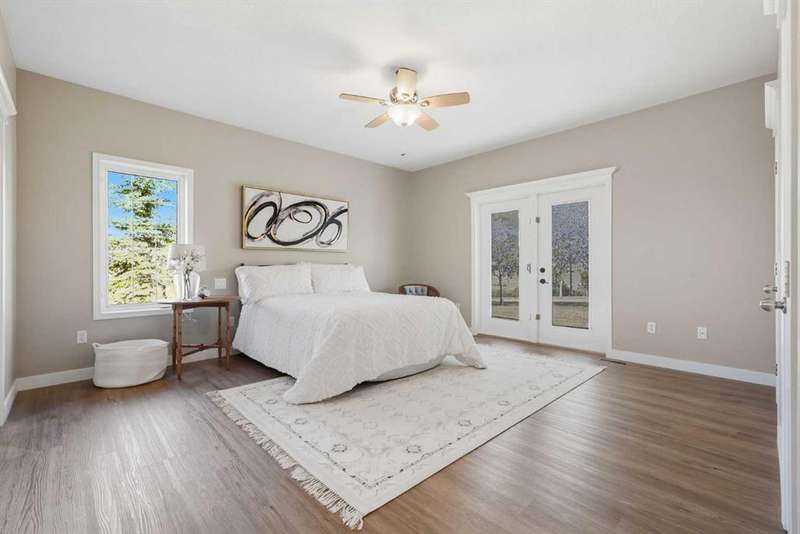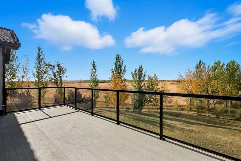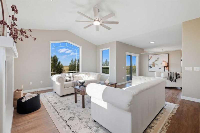 Welcome to this custom-built, 3500 sq ft developed area, walk-out bungalow perched on a scenic hilltop in Wheatland County, just 10 km north of Strathmore and only 25 minutes from Calgary International Airport. Set on 3 private, beautifully treed acres surrounded by agricultural fields and boasting unobstructed west-facing views of the Rocky Mountains, this property combines luxury living with peace and privacy. A tree-lined driveway lit with stately fixtures guides you to the home, which has been newly updated with modern paint, lighting, flooring, appliances, and decking, offering a fresh and stylish feel throughout. Designed for easy country living, the property is virtually maintenance free and finished with durable stucco and asphalt shingles. The 47’ x 31’ shop is fully insulated and heated, finished with a metal exterior and metal roof, making it ideal for storage, business, or hobby use in any season. Inside, the main floor showcases a large kitchen with peninsula seating, walk-in pantry, and a cozy breakfast nook with garden doors opening to the west-facing deck with glass railings—perfect for evening sunsets. The dining area and main living room are filled with natural light from oversized windows, and anchored by a gas fireplace, creating a warm and welcoming atmosphere. The master suite includes two walk-in closets, a spa-inspired 4-piece ensuite with a standalone soaker tub and separate shower, and garden doors to the east, perfect for enjoying peaceful morning sun. A den, main floor laundry, and central air conditioning add comfort and practicality. The walk-out basement, complete with in-floor heating, features a large family room with a built-in entertainment area, three bedrooms, big windows, and access to an enclosed patio—a cozy, protected space to enjoy your surroundings year-round. Additional highlights: oversized attached garage with in-floor heat, built-in cabinetry, sink, and hot/cold water, as well as 3 frost-free hydrants located throughout the property. Surrounded by mature trees, wide-open fields, and breathtaking west-facing views. Just a short drive to amenities in Strathmore, and a quick commute to Calgary and YYC. This home offers the ideal combination of luxury, low-maintenance design, and unmatched rural charm. The land offers many possibilities too for future uses as the house and shop were developed on the east side of the property. Whether you're seeking a private family acreage or a turnkey retreat with space to work and play, this property delivers. A rare opportunity to own a thoughtfully designed, move-in-ready acreage in one of Wheatland County’s most desirable locations. Call your AWESOME Realtor today to book a viewing!