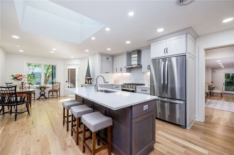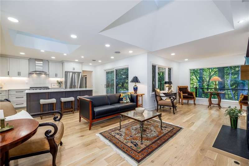 SPECTACULAR ARCHITECT DESIGNED MID CENTURY RANCH IN A NATURE PARADISE OF DURAND EASTMAN PARK WITH LAKE ONTARIO BEACH ACCESS! NESTLED ON OVER 250 FT ADJACENT TO DURAND EASTMAN PARK WITH HIKING TRAILS & ACCESS TO 977+ ACRES! RARE ONE-OF-KIND PROPERTY IS THE ULTIMATE IN QUALITY, DESIGN, TOTALLY UPDATED TO PERFECTION & PRIVACY WITH PRISTINE NATURE ALL AROUND. FEATURING 5-6 BEDROOMS, SIX BATHROOMS. ONE FLOOR LIVING & MORE! FROM ENTERING THIS PROPERTY, "WHITE & BRIGHT" FOYER WITH HEATED LARGE GRAY TILE FLOORS. OPENING TO THE HALLMARK OF THIS HOME A SPECTACULAR GREAT ROOM WITH EXPANSIVE WINDOWS OVERLOOKING THE PARK, STUNNING "COZY HEAT" BIRCH LOGS GAS FIREPLACE-BLACK LEATHER GRANITE SURROUND & QUARTER SAWN WHITE OAK MANTLE. ULTIMATE DREAM COOK'S KITCHEN FEATURES CUSTOM AMISH CABINETRY -PAINTED LIGHT GRAY WALL CABINETS & GRAY STAIN OVER CHERRY CENTER ISLAND WITH QUARTZ COUNTERTOPS & NEW STAINLESS STEEL APPLIANCES INCLUDING A GAS RANGE/STOVE. ALL WITH WHITE OAK FLOORS & TWO VAULTED CEILING SKYLIGHTS WITH ACCESS TO THE MOST BEAUTIFUL BRICK PAVER PATIO WITH ULTIMATE NATURE VIEWS. LEADING TO THE BEDROOM WING: TWO UPDATED BATHS & THREE BEDROOMS ALL WITH WHITE OAK FLOORS. ANOTHER SPACIOUS LIVING AREA OR IN LAW SUITE WITH ANOTHER CUSTOM KITCHEN WALL OR PREP KITCHEN WITH QUARTZ COUNTERTOPS & NEW STAINLESS STEEL APPLIANCES WITH A SPACIOUS BATHROOM WITH ONYX WALL & CEILING SHOWER & HEATED GRAY TILE FLOORS! THIS LIVING AREA LEADS YOU TO THE "TREE HOUSE" SUITE WITH BREATHTAKING ELEVATED PARK VIEWS OF NATURE, WALK IN CLOSET & STUNNING BATH WITH LARGE GRAY TILE, ONYX SHOWER WALLS & CEILING WITH GLASS TO SEE NATURE WHEN YOU ARE IN THE SHOWER! SEPARATE WALK OUT LOWER LEVEL, HEATED GRAY TILE FLOOR EXERCISE ROOM OR BEDROOM WITH BATH. MAIN WALKOUT LOWER LEVEL WITH BEAUTIFUL WOOD TRIM AND DOORS, CUSTOM CHERRY KITCHEN WALL, LIVING AREA WITH "COZY HEAT" GAS STOVE & BRICK FLOORS LEADING TO LOWER LEVEL BRICK PATIO.LOWER LEVEL WITH ACTIVITY ROOM /SUITE WITH BATH. PATIO LEADS TO INGROUND GUNITE POOL, CABANA & ULTIMATE PARK VIEWS! ACCESS TO DURAND-EASTMAN BEACH, LAKE ONTARIO & GOLF COURSE. ULTIMATE NATURE PARADISE-RESORT STYLE LIVING AT AN AMAZING VALUE! Sq.FT 3,481 from Matterport floor plan