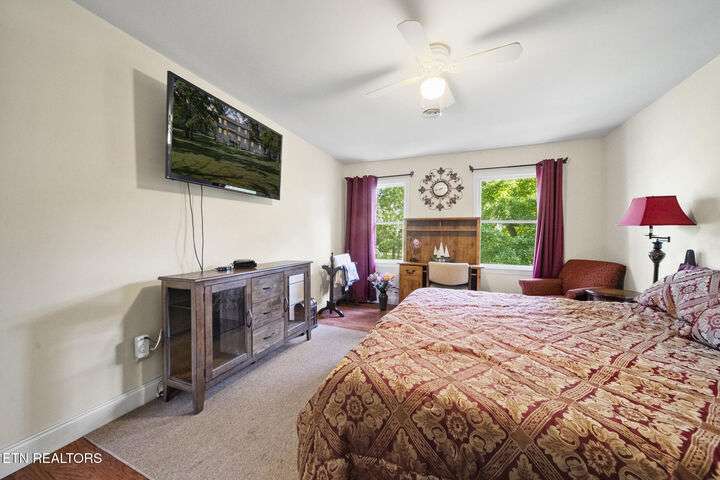 Price Reduced! Set on a lush, green lot in the heart of Baneberry, this warm and inviting two-story home is a peaceful sanctuary. From the moment you arrive to the property, you are greeted with a long private driveway, often the gathering spot for deer. Next, step into the welcoming foyer, where you'll notice a sense of comfort and timeless appeal of this 4 bd, 2.5 bath home. The living room features a stunning stone fireplace as its centerpiece, perfect for cozy evenings and gatherings with friends and family. Natural light pours in through beautiful wood-frame and large picture windows, offering tranquil views of the surrounding greenery and wildlife. Also on the main level is a family room, a formal dining room, and an eat-in kitchen. There is plenty of room for entertaining and gathering. The kitchen and dining area flow effortlessly, ideal for both everyday living and entertaining. Each of these rooms have large windows looking out to the expansive lot. The home boasts an enormous master bedroom, providing a true retreat with space to relax and unwind. You need to see it in person to truly appreciate the size! The very large secondary bedrooms offer flexibility for guests, children, or home office needs, all with ample closet space and generous layouts. Outside, the property is surrounded by mature trees and lush landscaping, creating a peaceful setting where deer and birds are frequent visitors. Located in the friendly and picturesque community of Baneberry, you'll enjoy a lifestyle enriched by local traditions like golf cart parades, seasonal events, and an active, welcoming neighborhood spirit. Set in the lakeside community of Baneberry, this home is perfect for those seeking natural beauty, a sense of belonging, and the comfort of spacious, well-designed living. Don't miss this opportunity to own a piece of East Tennessee charm—schedule your private showing today.