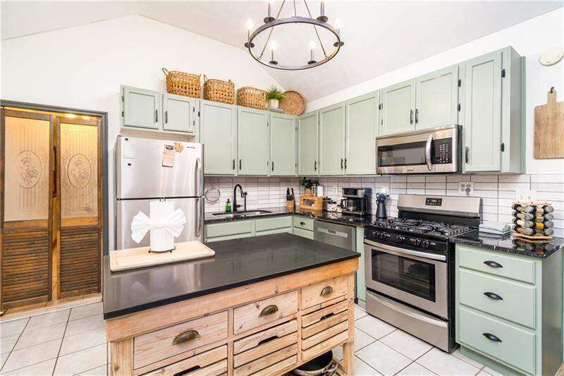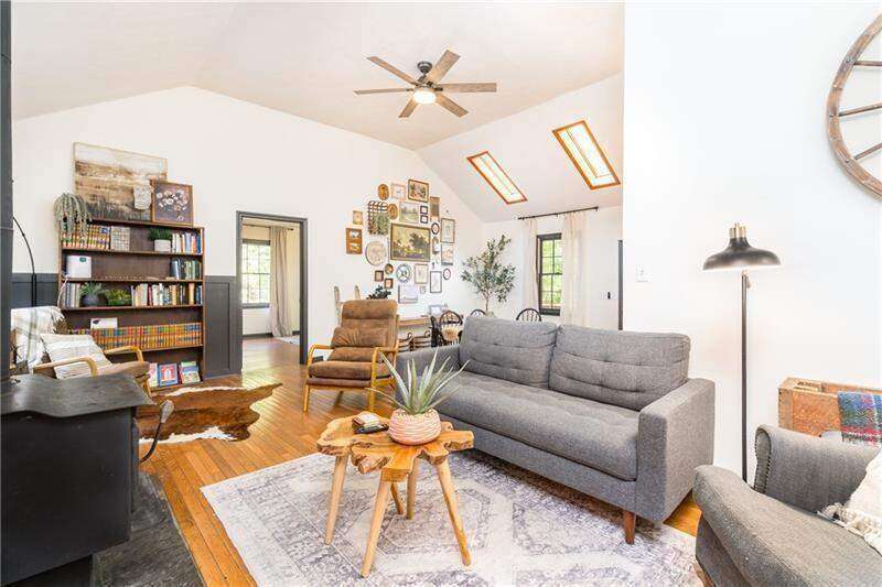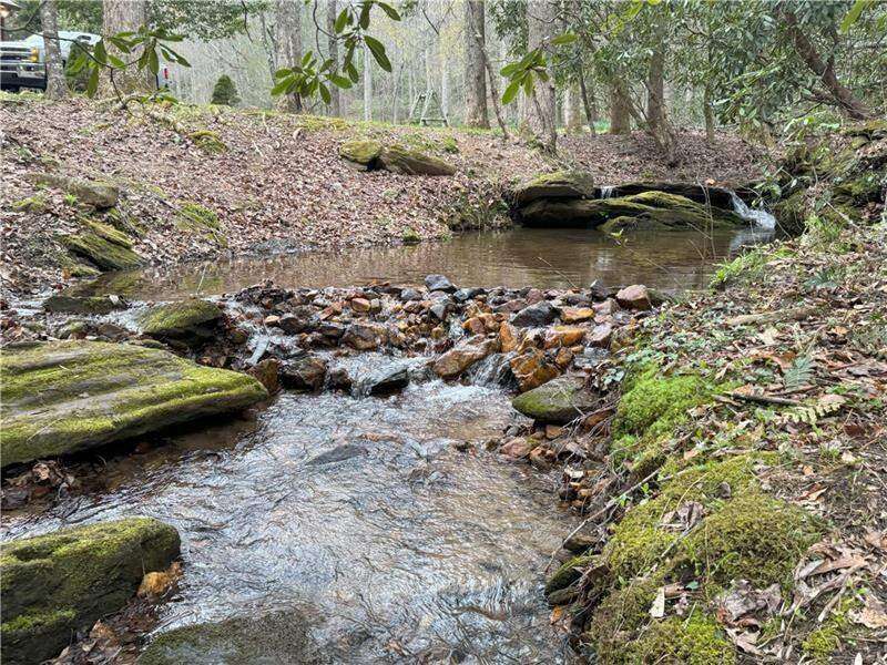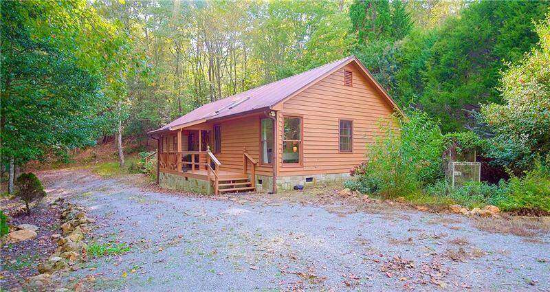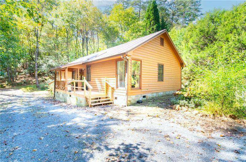 Welcome to your dream mountain retreat! Nestled in the picturesque mountains along Vandegriff Creek in Elijay, GA, this enchanting ranch cottage offers a harmonious blend of natural beauty and modern luxury. *Spanning 3.52 acres, with over 350 feet of pristine creek frontage, this home is a rare sanctuary for those seeking tranquility and refined living. *Step inside to vaulted ceilings with skylights that flood the space with natural light. Scenic views surround you from every window, while warm hardwood floors and tastefully updated lighting and hardware add a touch of sophistication. The open-concept floor plan creates an inviting space for entertaining and making memories with loved ones. *The heart of the home, the kitchen, boasts striking black granite countertops with elegant white veining, complemented by glossy ceramic backsplash tiles. Sage green cabinetry and a beautifully crafted wood island complete the space, creating both style and function. Just behind the kitchen, you'll find convenient access to the laundry room, mudroom, and additional storage. *Anchoring the living area is a character-rich black stove pipe on a stone threshold, providing both warmth and a focal point. The open game room, with its peaceful views, offers flexible use as an office or additional lounge area. From here, step out onto the expansive back deck that overlooks the property, leading to a stone patio that provides a pathway to the yard and a large firepit, perfect for gatherings under the stars. *In the owner's suite, large windows flood the room with sunlight and offer serene views of the creek and the firepit, creating a perfect sanctuary to start each day. *Outdoors, relax around the custom-built firepit, designed to seat eight comfortably, with breathtaking views of the neighboring horse pasture and the soothing sounds of the babbling creek. *For nature lovers and adventure seekers, a scenic hiking trail into the mountains lies less than half a mile away. The Chattahoochee National Forest and the Blue Ridge Wildlife Management Area are just beyond, offering countless trails, waterfalls, and outdoor attractions. Sold fully furnished, this property offers turnkey luxury with exceptional short-term rental potential. Just 25 minutes from Downtown Ellijay, with its charming orchards, wineries, shopping, and dining, this mountain oasis offers the perfect balance of seclusion and convenience. *Whether you're seeking a personal retreat or a lucrative investment, this mountain cabin exceeds every expectation. The HOA is comprised of 3 homes only. No Fees. Minimal restrictions. Road has been recently paved!