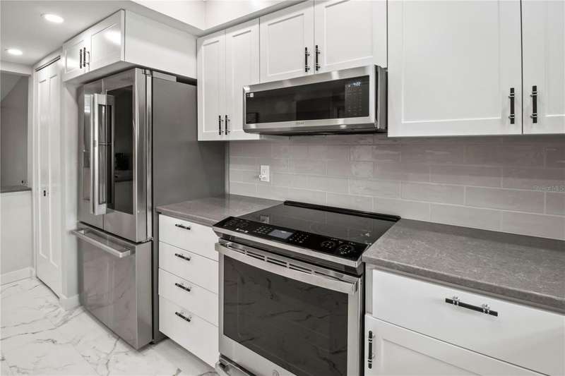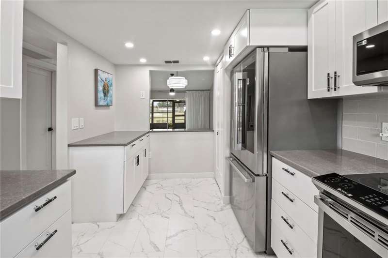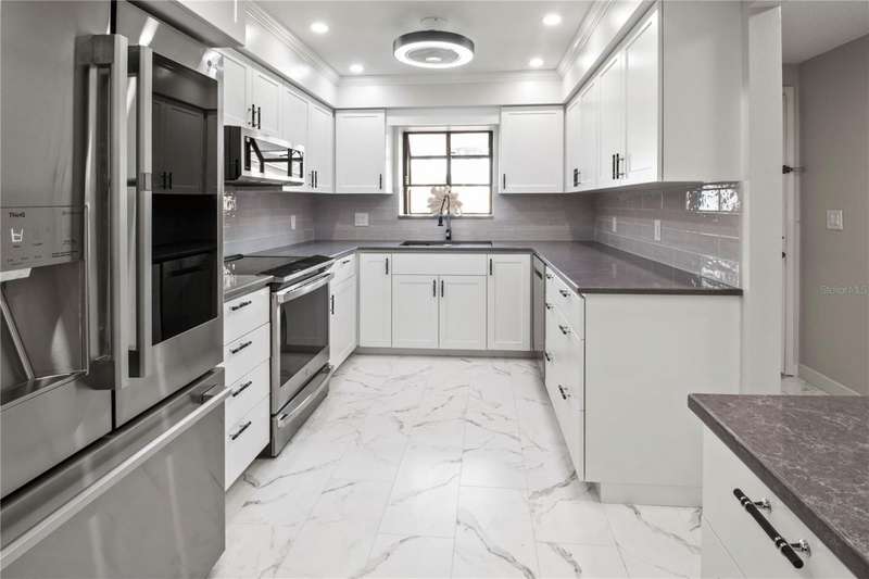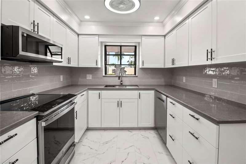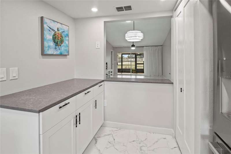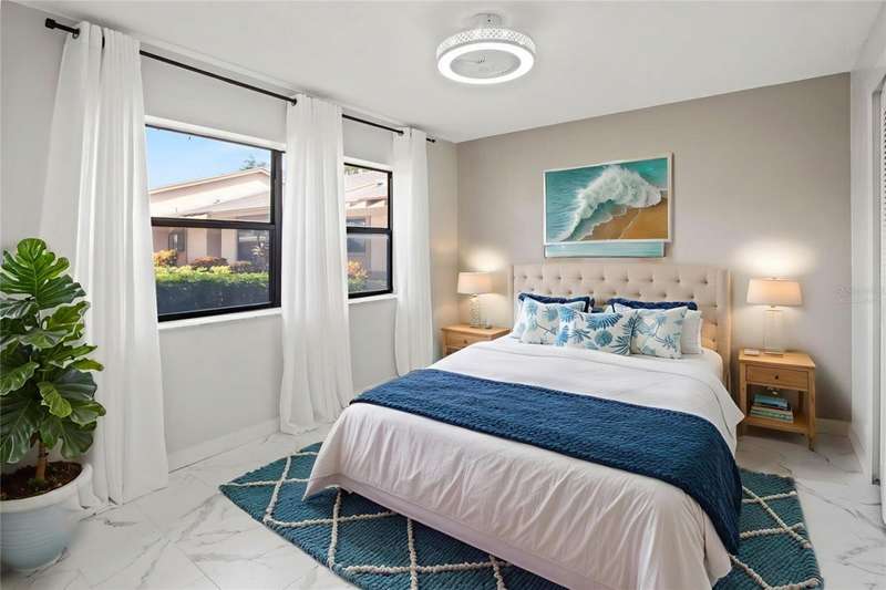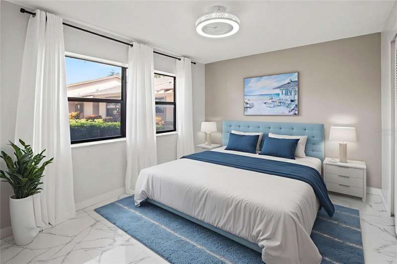 One or more photo(s) has been virtually staged. So close to the fun of beautiful white sandy beaches of Anna Maria Island (5 miles away)...Fully renovated top to bottom and move-in ready, this beautifully updated 2-bedroom, 2-bathroom condo is located in the highly desirable pet friendly MeadowCroft South 55+ community. Your new home features a bright, open floor plan with vaulted ceilings and a split-bedroom layout that offers optimal privacy for residents and guests. Enjoy peaceful evenings on the oversized lanai with breathtaking sunset views. Recent 2025 renovations include a new A/C unit (2025), white kitchen shaker-style custom cabinets with gray quartz countertops and backsplash, top of the line stainless steel appliances, new washer/dryer combo, and ceramic tile flooring throughout the entire unit. All rooms have been freshly painted and all doors replaced with new interior shaker doors, trim and baseboards giving the condo a clean, modern feel. Additional highlights include spacious walk-in closets in both bedrooms, a new in-unit laundry area for added convenience, a whole house tankless water heater, and covered storage. The condo is located in a quiet, low-traffic area of the community. MeadowCroft South offers a wide range of amenities including many social events, a scenic lake with fountain, a heated pool and spa, and a covered cabana area with showers, bathrooms, and ample lounging space. The community is ideally located just 3 minutes from GT Bray Park, which offers tennis, covered pickleball, a fitness center, and nature trails. You'll also be close to shopping, dining, golf courses, IMG Academy, Blake Medical Hospital and Sarasota-Bradenton International Airport (less than 10 miles away). This condo is perfect as a snowbird getaway, a full-time residence, or an income-generating rental. Best of all, you're only 5 miles from the world-famous white sandy beaches of Anna Maria Island, where you can spend your days lounging by the turquoise Gulf waters, strolling scenic shoreline trails, and dining at charming beachfront restaurants. With all major updates already completed, it's ready for its new owner to enjoy. Don't miss out..priced to sell quickly!! See it Today!