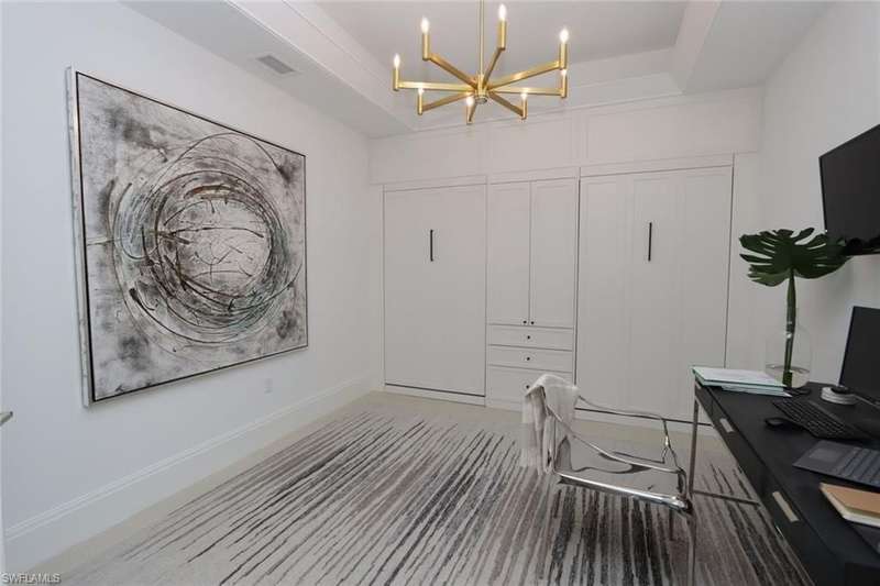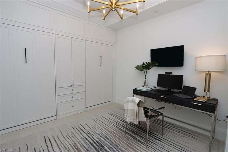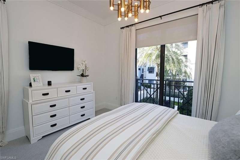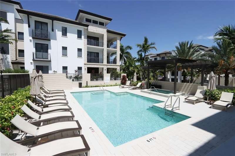 Open Jan, Feb, March and April 2025. OWNER WILL DO 60-day Leases!! Step into this beautiful, upscale condo in downtown Naples and live the Naples lifestyle you seek just steps off 5th Avenue S with world-class restaurants, upscale shopping, art galleries, car shows and more. This meticulously maintained Naples Square Chelsea floorplan with two bedrooms plus den, two full baths and powder room encompasses 1,832 square feet of luxurious living space. Double doors have been added to the den as well as two twin Murphy Beds to function as a 3rd bedroom when needed. Tile floors throughout except carpeted bedrooms. The great room has motorized shades; all windows and both doors leading to the balcony are hurricane resistant. Enjoy entertaining on your large balcony overlooking the recently upgraded, lush tropical courtyard with pool, spa, fire-pit, BBQ grills and dining area. Naples Square residents also enjoy a state-of-the-art fitness center, social room with 3 TVs, billiards and a catering kitchen; under building reserved parking, secure climate-controlled storage and bicycle storage. Walk or bike to Naples’ pristine white, sandy beach, Baker Park and the Naples Greenway.
