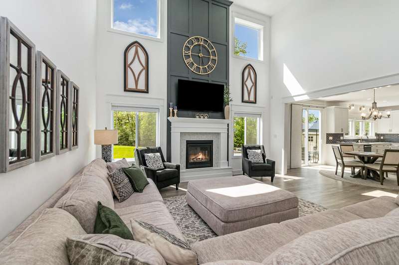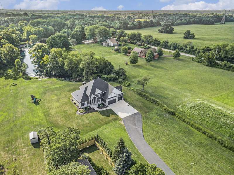 Home Sweet Home! This BETTER THAN NEW 'DUNELAND SCHOOL CORP' Custom Open Concept 6 Bed 5 Bath 2 Story MAINFLOOR MASTER SUITE Home with a 3 Car HEATED GARAGE on 2.76 Acres with a Pond and Finished Basement with NO HOA is a MUST SEE! From the moment you walk up to the home you will love the Grand Covered Front Porch and Foyer area. The Living Room/Great Room offers 2 Story Ceilings, Beautiful Fireplace, Large windows with a lot of natural lighting and again the pond view. The Chefs Kitchen is Beautiful with Custom Cabinets, quartz counters, Subway tile backsplash, Island and Stainless-Steel Appliances but is ideal for those that love to cook and entertain! Especially with the Butlers Bar! Looking for additional entertainment space? The finished Basement offers a Theater Room, Large Rec-room, Exercise area, office, and 6th Bedroom as well as a bathroom. That or head out on the sprawling upgraded Patio with pond views and if you feel lucky bring your fishing pole! Upstairs offers Three good sized bedrooms, 2 Full Baths as well as a Large Studio Style Related Living Area with private laundry, small Kitchenette, and shared bathroom. Escape to your Main Floor Master Suite with beautiful trey ceilings, large windows with a Pond View, walk-in closet, private bathroom with double bowl vanity (quartz counter), make-up bar, tiled shower with bench, and a jetted tub to let the stress melt away! There are so many great upgrades this home has to offer like two furnaces, a heated garage, WHOLE HOME GENERATOR, Sprinkler System and SO MUCH MORE! THE SELLERS SPARED NO EXPENSE and NOW THIS CAN BE YOURS so SCHEDULE YOUR SHOWINGS TODAY!