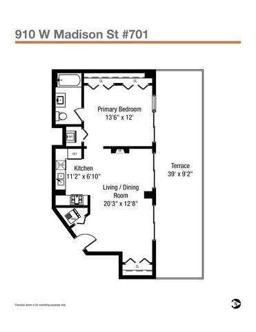 Experience the ultimate blend of style and convenience in this West Loop loft, where soaring 10-foot ceilings, a dramatic wall of windows, and a sleek open layout create the perfect backdrop for modern city living. A rare **39-foot private terrace** extends your living space outdoors, offering room to dine, lounge, and entertain in true Chicago fashion. Inside, the spacious living area flows seamlessly into a granite-topped kitchen and features a cozy fireplace, while the bedroom retreat boasts generous closet space, terrace access, and an en-suite marble bath. With in-unit laundry, garage parking, fresh paint, newer carpet, fully furnished, this home is move-in ready and just steps from the neighborhood's renowned dining, nightlife, galleries, and easy downtown access.