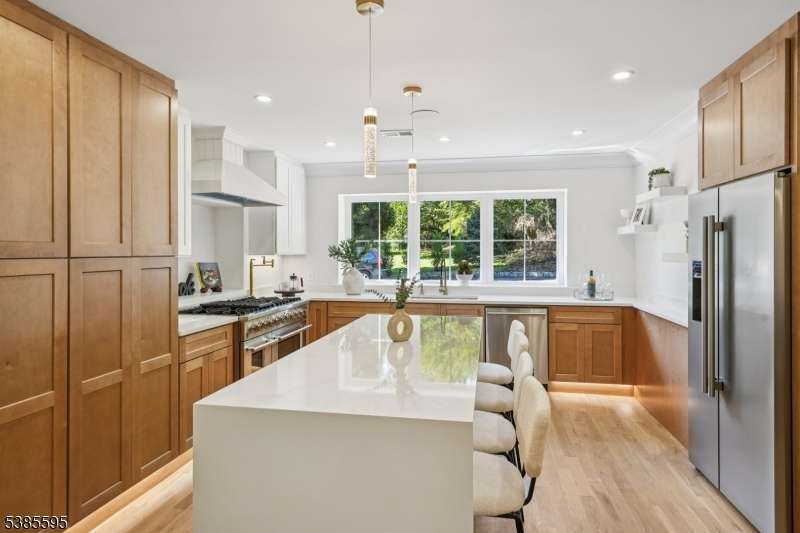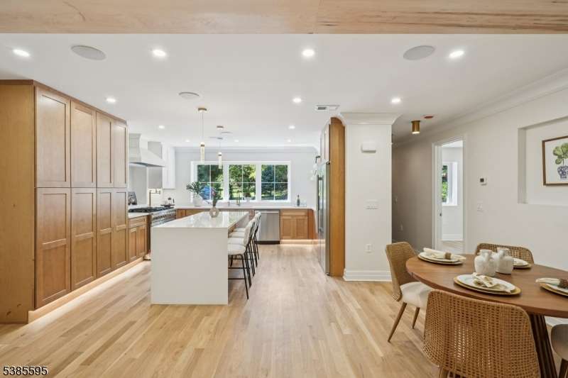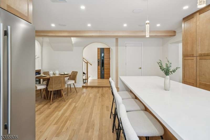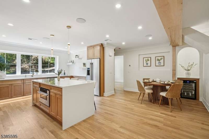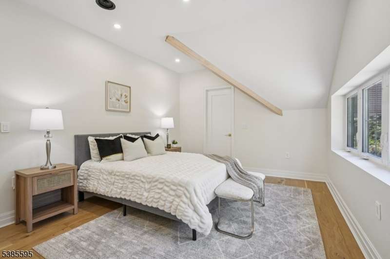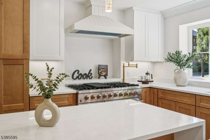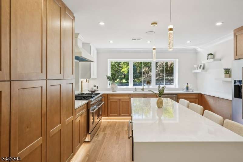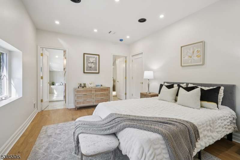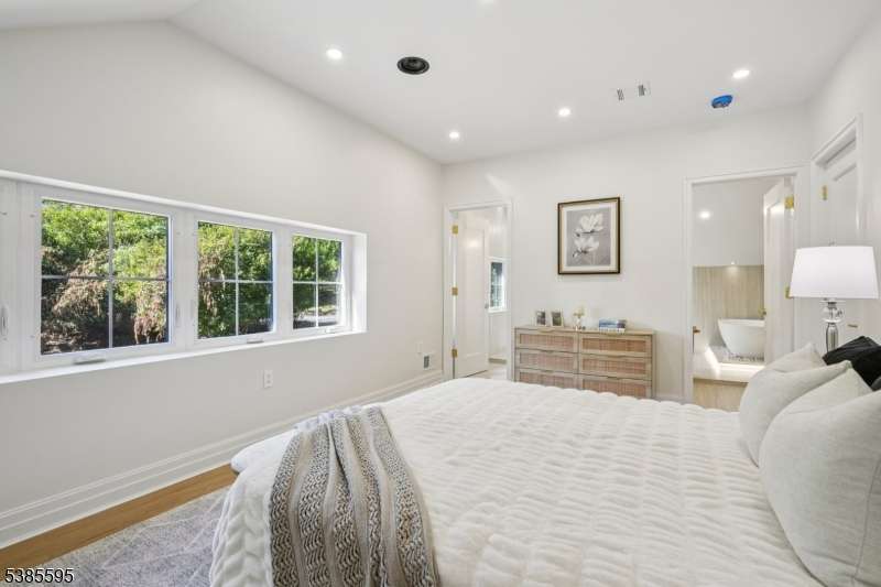 This impeccable, fully-updated 4-bed 3.1 bath home in prime West Orange is the one you've been waiting for. Meticulously updated from top to bottom -- the only thing missing is you! This stunning home features thoughtful and stylish updates including wide panel floors, all-new thermal windows, and speakers throughout. The first floor boasts a large, open kitchen with central island, wine fridge, and 8-burner gas range. Truly a chef's dream! The spacious living room includes a recessed TV nook and lots of light. Bedroom suite with attached full bath offers convenience for your guests. A powder room completes this level. Upstairs, the expansive primary suite is your own private getaway, featuring lovely, large windows providing tons of light. Plus a huge walk-in closet and a truly stunning, luxurious en suite with a soaking tub, open shower with dual rain shower heads, and radiant heat. There are two other good size bedrooms and a full hall bath with travertine stone. The soundproof office is perfect for working from home, second-floor laundry provides convenience, and a rec room/family room provides space for fun and friends. The backyard features lush mature landscaping, a fenced in area, and a patio ready for you and your guests. Attached 1.5 car garage provides extra storage. Additional features include 2-zone heat/central air, new 200-amp electric, new roof, and new plumbing. Convenient to schools, parks, shopping, and major highways. Not a thing to do but move right in!