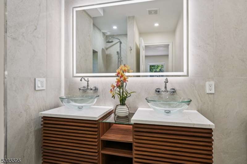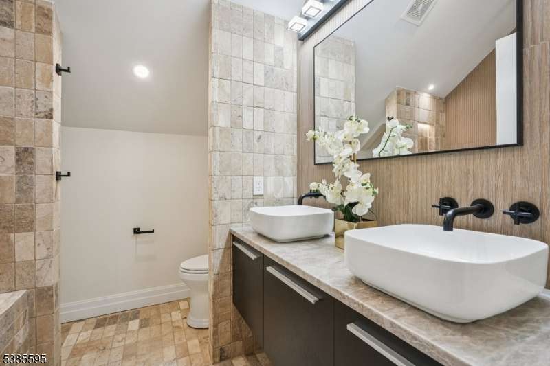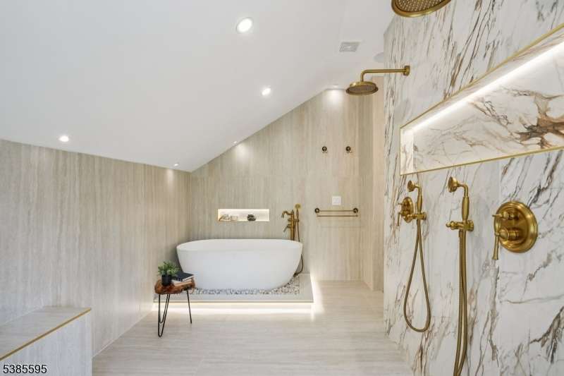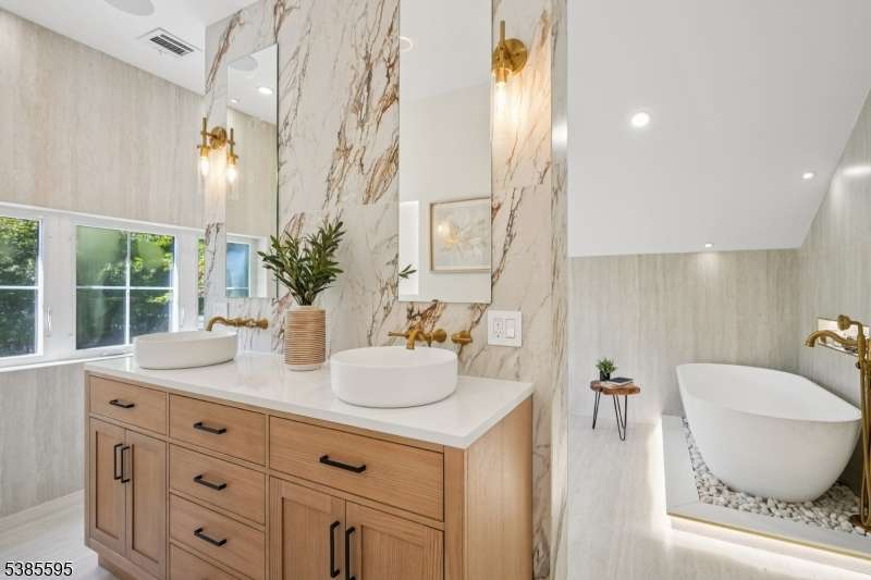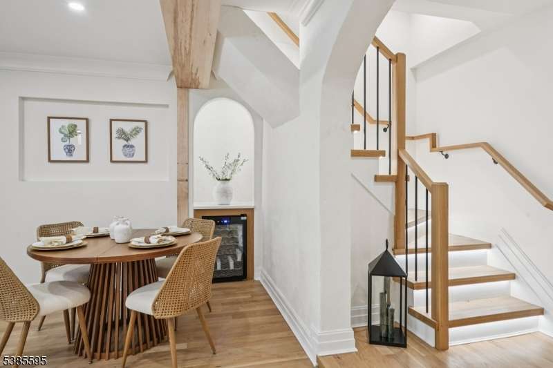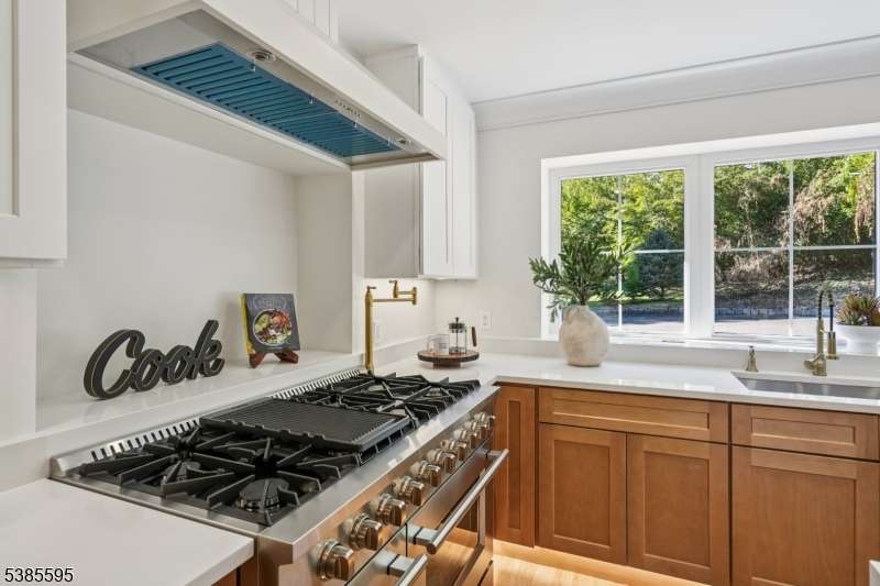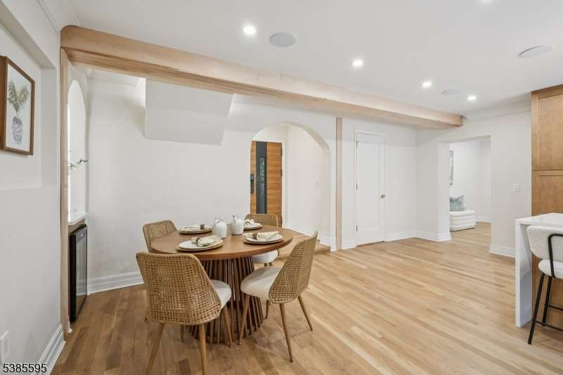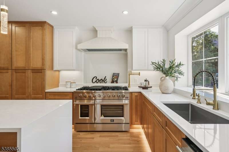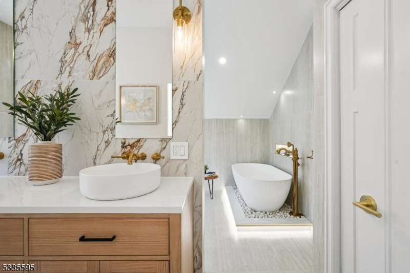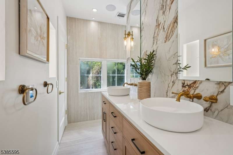 This impeccable, fully-updated 4-bed 3.1 bath home in prime West Orange is the one you've been waiting for. Meticulously updated from top to bottom -- the only thing missing is you! This stunning home features thoughtful and stylish updates including wide panel floors, all-new thermal windows, and speakers throughout. The first floor boasts a large, open kitchen with central island, wine fridge, and 8-burner gas range. Truly a chef's dream! The spacious living room includes a recessed TV nook and lots of light. Bedroom suite with attached full bath offers convenience for your guests. A powder room completes this level. Upstairs, the expansive primary suite is your own private getaway, featuring lovely, large windows providing tons of light. Plus a huge walk-in closet and a truly stunning, luxurious en suite with a soaking tub, open shower with dual rain shower heads, and radiant heat. There are two other good size bedrooms and a full hall bath with travertine stone. The soundproof office is perfect for working from home, second-floor laundry provides convenience, and a rec room/family room provides space for fun and friends. The backyard features lush mature landscaping, a fenced in area, and a patio ready for you and your guests. Attached 1.5 car garage provides extra storage. Additional features include 2-zone heat/central air, new 200-amp electric, new roof, and new plumbing. Convenient to schools, parks, shopping, and major highways. Not a thing to do but move right in!