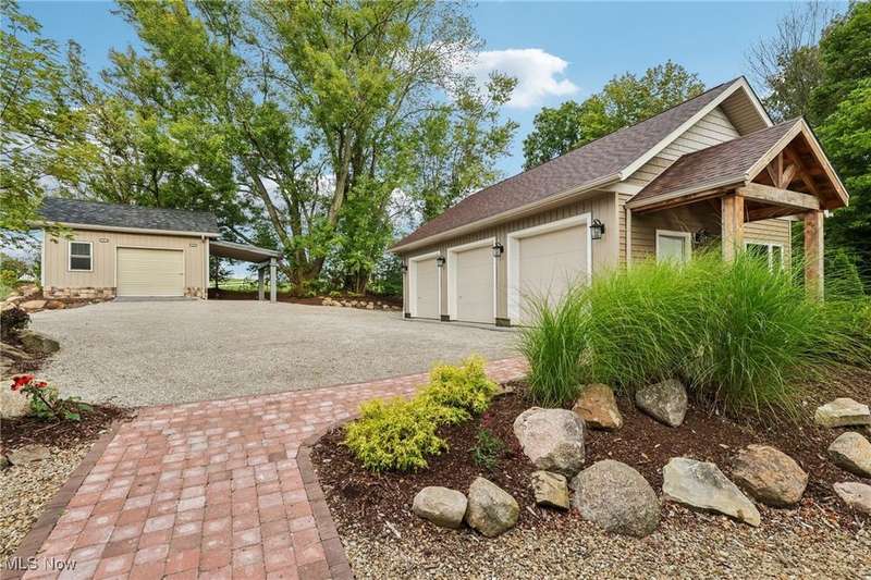 Do not miss this opportunity to enjoy traditional country style living at its finest in this completely renovated, 2 story colonial home in Middlefield! This charming home has so much to offer with the convenience of several amenities close by such as restaurants, shopping, grocery stores, Amish markets & so much more all just minutes away. This fabulous house boasts 3 bedrooms, 3 full baths, a spacious eat-in kitchen with a butcher block island, new stainless steel appliances, a large breakfast bar, and hardwood flooring that lead into the large living room with a spiral staircase, custom woodwork, picturesque windows & a woodburning fireplace to cuddle up by during those cold winter nights. The first floor offers a large laundry room & full bathroom, both which have been nicely appointed. Enjoy a large deck the wraps around both the side & back of the home overlooking the spacious & serene yard all christened by lavish flower beds and is surrounded by nothing but nature & beautiful landscaping offering a variety of different plants & perennials that bloom beautiful flowers and an array of colors throughout the year! Relax with friends and family around the outdoor firepit w/custom seating. The new stewards of this home will thoroughly enjoy the brand new, custom 3 car garage with light & airy windows & 3 separate bays to house vehicles, lawn equipment & space for the car enthusiast or all of the big toys someone could think of. The additional, freestanding workshop, studio or storage shed is perfect to use however you see fit for your personal needs! Just about absolutely everything has been updated in this timeless, completely renovated home including new furnace, H2O tank, septic system, electrical system, windows, roof, central air, new kitchen & baths, flooring, paint, woodwork, custom landscaping & so much more! Some photos have been virtually staged for illustration purposes only. Schedule your showing today & don't miss this opportunity to own this home!