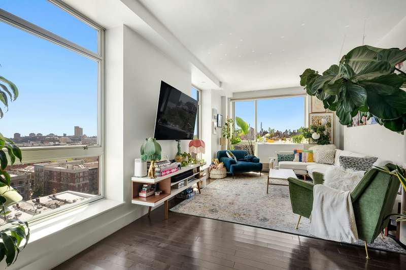 First top floor 1 bed unit available since initial construction, apartment 12D is a Specialty Unit- large, loft style, 1 bedroom gem with sweeping views of Morningside Park and Midtown Manhattan. This apartment is highly versatile, with an open floor plan and square footage to spare. The unit is flanked by eastern and southern exposures, absolutely bathing the apartment in light from sunrise to sunset. The bedroom can easily accommodate a king bed with nightstands at both sides, and boasts its own over-sized view of the expanse of Morningside Park and beyond. The apartment shares only two walls with no one above you, providing a rarely matched sanctuary of peace and privacy in the frenetic heart of Manhattan.88 Morningside is a full service luxury condop at the southwestern edge of Harlem. Adjacent to Morningside Park, it is convenient to the A,B,C,D express trains, the m60, Columbia University, and the stellar dining and nightlife offered on historic Frederick Douglass Boulevard. The doorman/concierge is in place from 7am to 11pm, and the super lives on-site. The building offers a jaw dropping roof deck with built in grill and bar seating - available for private reservations. There's also a media room/lounge with 67" television, ping pong, and pool table. The resident gym is open 24/7, and each apartment has its own reserved spot in the bike room, and a deeded storage cage. Perhaps best of all, the tax abatement continues through 2027.