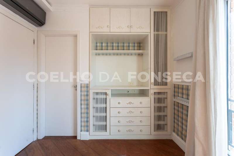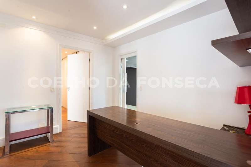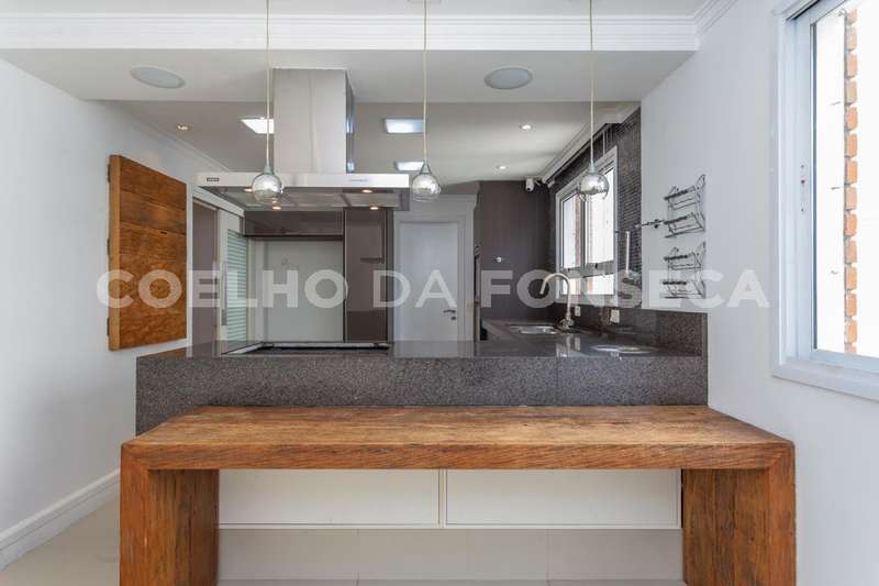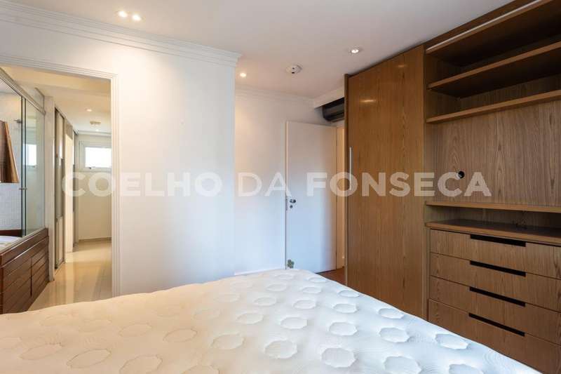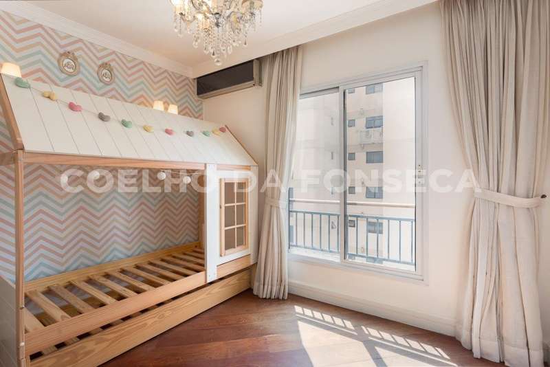 Excelente apartamento reformado com terraço, vista deslumbrante e muita luz solar. Do hall privativo, a sala de estar se abre para um terraço encantador. Piso em madeira, lareira, ar-condicionado e janelas antirruído garantem excelente isolamento acústico. Living com amplas janelas balcão e ar-condicionado. Sala de TV com home theater e som ambiente. Na área íntima, espaçoso home office e ótimos armários no corredor. Todas as suítes possuem janelas balcão antirruído, ar-condicionado, e a suíte principal conta com closet espaçoso. Banheiros equipados com aquecimento de piso, e a suíte inclui uma banheira espaçosa. Aquecimento de água a gás. Cozinha com ilha gourmet e marcenaria de qualidade. Condomínio com piscina, quadra poliesportiva, playground, salão de festas e gerador.