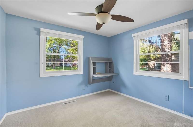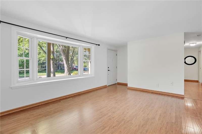 Great curb appeal. Wonderful 3 bedroom, 2 full baths home. Inviting covered front porch. Beautiful private .76 acre treed lot. Fenced yard. Beautifully landscaped yard. Updated windows. Bay window in family room. Wood laminate flooring. New carpet in 3 bedrooms. Updated kitchen, all appliances stay. Sliding door from kitchen to large treed yard. Storage shed. Updated baths. Oversized 2 car garage with storage. Excellent condition & location. Minutes from The Greene & I-675.