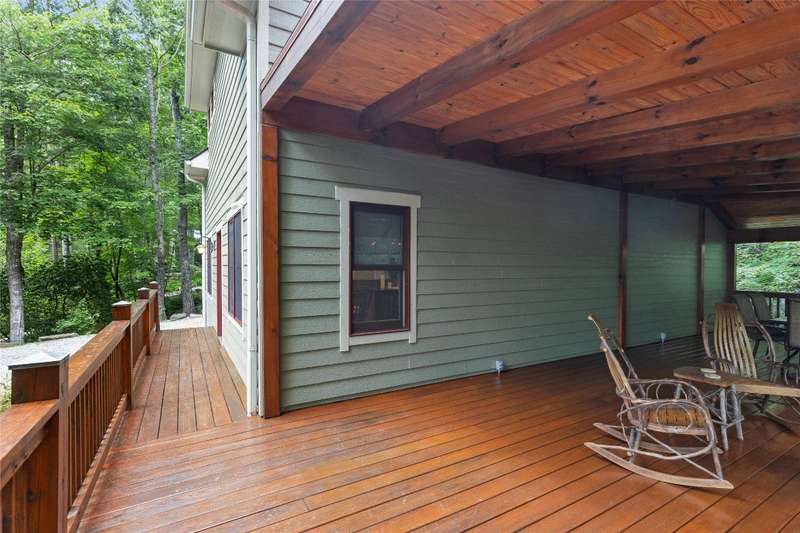 Nestled in the heart of North Carolina's Blue Ridge Mountains, just minutes from the charming village of Cashiers, this Arts and Crafts-style home offers privacy, comfort, and natural beauty. Tucked at the end of a quiet cul-de-sac in Sapphire Valley, it borders a scenic trail leading to the Horsepasture River - ideal for fly-fishing, swimming, or simply enjoying the peaceful surroundings. The exterior of the home has been freshly painted, adding to its curb appeal and move-in readiness. Inside, wood flooring flows throughout, complemented by a modern Lutron lighting system, while the vaulted great room is filled with natural light from expansive windows to create an airy, welcoming space. An open-concept kitchen featuring granite countertops and a farmhouse sink connects seamlessly with the dining and living areas - perfect for everyday living and entertaining. The main-level primary suite offers both comfort and convenience, while a full guest bathroom on this level adds functionality. The upstairs loft includes a bonus room and a full bathroom. A spacious back deck has been reinforced to support a potential outdoor fireplace. The finished lower level features a large second living area with a stone gas fireplace, another bonus room with a closet, and a designated area for a prospective bathroom. This flexible space can be tailored to different lifestyles with potential for a media room, a game room, a studio, and more. Outside, a detached, air-conditioned two-car garage includes a beautifully finished guest apartment above, with a full kitchen, a living area, a bedroom, and a full bathroom. Under the garage is a partially finished space that is ready to be personalized. Currently, the home is served by a two-bedroom septic system and must be marketed as such. However, it has been approved for expansion to a four-bedroom system with the addition of a few more lines. A new water heater was installed in 2024. This property also offers excellent rental potential, thanks to its versatile layout, private guest accommodations, and desirable location near trails, rivers, and resort-style amenities. Residents of Sapphire Valley can enjoy access to indoor and outdoor pools, tennis courts, a fitness center, golf facilities, a community center, and more. Nearby, the stunning Narrows Waterfall adds to the area's natural charm. Just minutes away, Cashiers offers amenities for dining and shopping, while the town of Highlands is a short, scenic drive beyond.