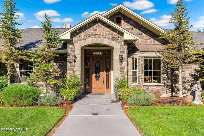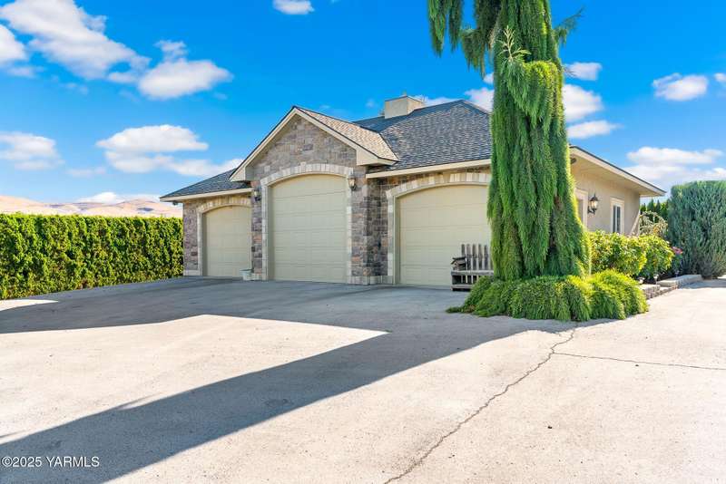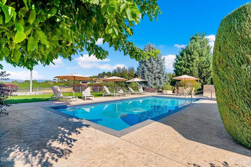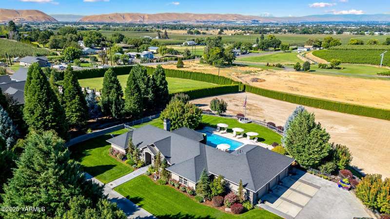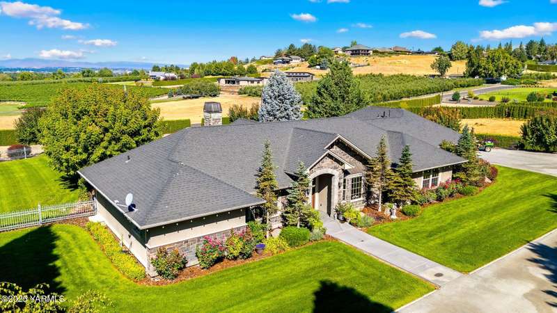 Welcome to your dream home in this Terrace Heights gated community, where privacy, breathtaking views, and refined living come together on an immaculate 3-acre estate. This stunning property features 2,327 square feet of thoughtfully designed living space, with 3 spacious bedrooms and 3 full bathrooms, offering both comfort and functionality. The heart of the home is a bright and open kitchen, beautifully appointed with granite countertops, and ample natural light, perfect for everyday living and entertaining alike. Elegant oak doors and finishes throughout the home add timeless warmth and character. The central vacuum system with convenient kick sweeps makes cleanup a breeze and every space of the house was designed with storage space. Step outside and enjoy your private backyard retreat, complete with an in-ground Gunite pool featuring a brand-new sand filter and pool heater. The outdoor living space includes a gas fire pit and a dedicated hookup for a gas BBQ, and a view that will always take your breath away. The professionally landscaped grounds offer lush greenery, mature trees, and beautifully maintained garden beds that enhance the natural beauty of the property. The primary suite is a serene escape with its own private patio area, shaded and perfect for morning coffee or evening relaxation. You will also find a spacious walk-in closet and a luxurious bathroom that adds to the sense of retreat. The home also features a three-car attached garage, with the third bay finished and heated--ideal for a workshop, gym, or hobby space. Adding even more value is the massive 1,000+ square foot shop, providing endless possibilities for storage, RV parking, and all of your tools and toys. Whether you're looking for room to breathe, space to create, or simply a home that offers beauty and privacy, this extraordinary property delivers it all. Don't miss this rare opportunity to own a truly remarkable home in one of Terrace Heights' most desirable communities!
