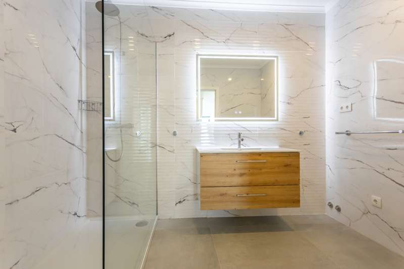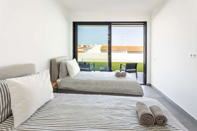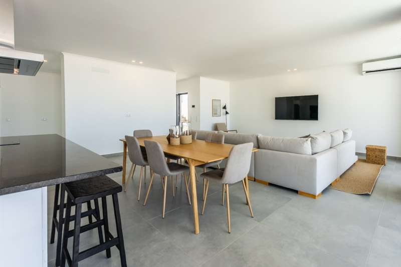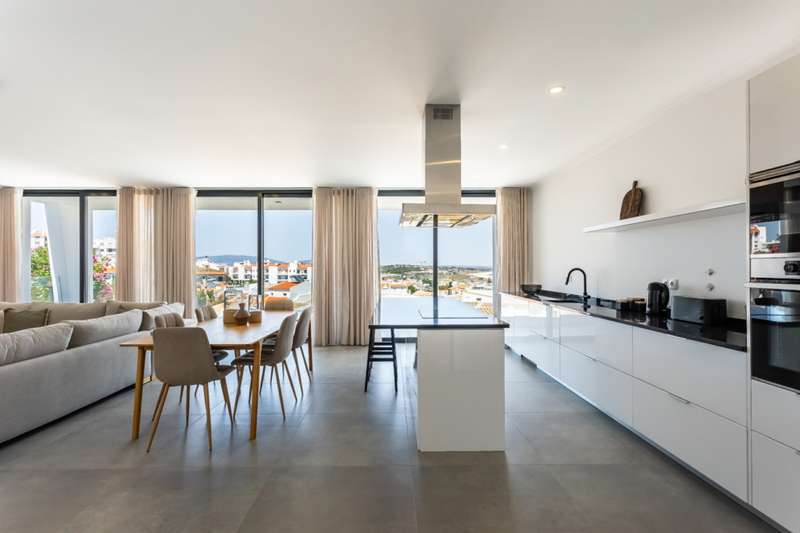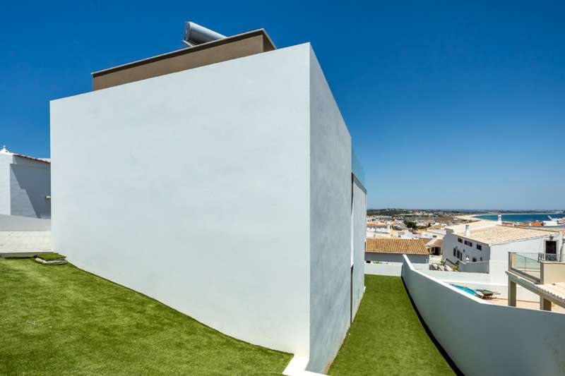 Modern 3-bedroom villa with pool and spectacular views over Meia Praia beach and the city of Lagos for sale in the Algarve. Recently built, this villa boasts high quality finishes, air conditioning, large areas, and is filled with natural light and sea views from the moment you open the door. Upon entering the property, you'll find a spacious living room, dining room and fully equipped modern kitchen, all with access to a large balcony through floor-to-ceiling sliding glass doors to enjoy the beautiful sea views. On the same floor, you'll find a guest bathroom and a laundry room. Down the stairs are 3 spacious bedrooms, two of which are en-suite and have built-in closets, while the master bedroom has a walk-in closet. All three bedrooms have direct access to the terrace and its private garden. On its rooftop, with breathtaking views of the sea and the city, is a large entertainment area with a swimming pool, leisure area and barbecue area, as well as a service bathroom. The property is fully secured with an automatic gate and a private garage. Located close to several beaches and golf courses, in a quiet area, within walking distance of the historic center of Lagos , and just 1 hour from Faro International Airport with easy access to the A22 and N125. CHARACTERISTICS: Plot Area: 500 m2 | 5 382 sq ft Area: 256 m2 | 2 752 sq ft Useful area: 165 m2 | 1 773 sq ft Deployment Area: 128 m2 | 1 383 sq ft Building Area: 256 m2 | 2 752 sq ft Bedrooms: 3 Bathrooms: 5 Garage: 1 Energy efficiency: A FEATURES: Modern 3-bedrooms Swimming pool Sea view New construction High quality finishes Air conditioning Equipped kitchen Private garden Rooftop Private garage