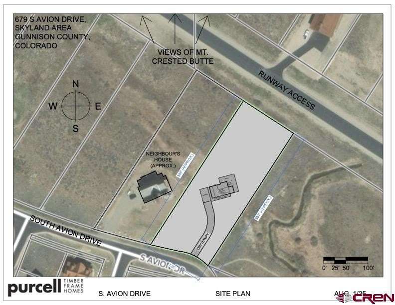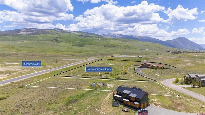 Trevor Bona, Bluebird Real Estate, LLC, C: 970-319-5092, trevor@bbre1.com, www.crenmls.com: Build Your Dream Home in Crested Butte with Runway Access and Spectacular Mountain Views! The complementary design, provided by Purcell Timber Frame Homes, is intended to give you an idea of what might be possible. Your custom home construction services provided by Reiser Design Build. *Buyer is not obligated to build this home.Located in the heart of the Upper Gunnison Valley, this end 1.2-acre lot backs up to 7.8 acres of open space owned by the Buckhorn HOA. A flat lot offers a unique opportunity to build your ideal mountain retreat. With direct access to a year-round maintained airstrip and space for a private hangar or a sizable second dwelling, this property is perfect for aviation and outdoor enthusiasts. There’s plenty of room to add extra structures, whether for storing equipment, housing a sprinter van, or building a golf simulator with incredible 360 views of the valley.Situated on the end lot with protected open space to the southeast, you’ll enjoy uninterrupted, panoramic views of Crested Butte and Whetstone Mountains. Just 10 minutes from downtown Crested Butte and 15 minutes from Crested Butte Mountain Resort, this location provides the perfect blend of privacy and convenience.Buckhorn Ranch offers immediate access to world-class trails, golfing, paddle boarding, a community playground, tennis courts and endless outdoor adventure. There is even a hiking trail at the southwestern edge of the property where you can enjoy a leisurely stroll right out of your driveway while surrounded by the beautiful West Elk Mountains. Whether you’re seeking outdoor adventure or peaceful relaxation, this location has it all.Don't miss your chance to own a premier lot with fly-in/fly-out access, stunning views, and adjacent protected open space.