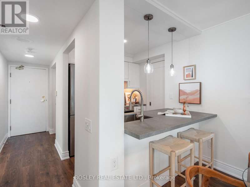 Welcome to The Rosedale! Nestled in a boutique condo of just 23 suites, this bright corner unit offers a 1 bedroom + large den layout, with the den easily working as a second bedroom or home office. The suite has been beautifully maintained and thoughtfully upgraded, featuring a renovated kitchen with wood detail backsplash and concrete-style countertops, wide plank laminate flooring, custom window coverings, and an oversized bedroom with double closets and custom inserts. East-facing windows flood the space with natural light throughout the day. And the location can't be beat! Just steps to TTC, Yonge and Bloor, Yorkville, shops, restaurants, and easy access to the DVP.