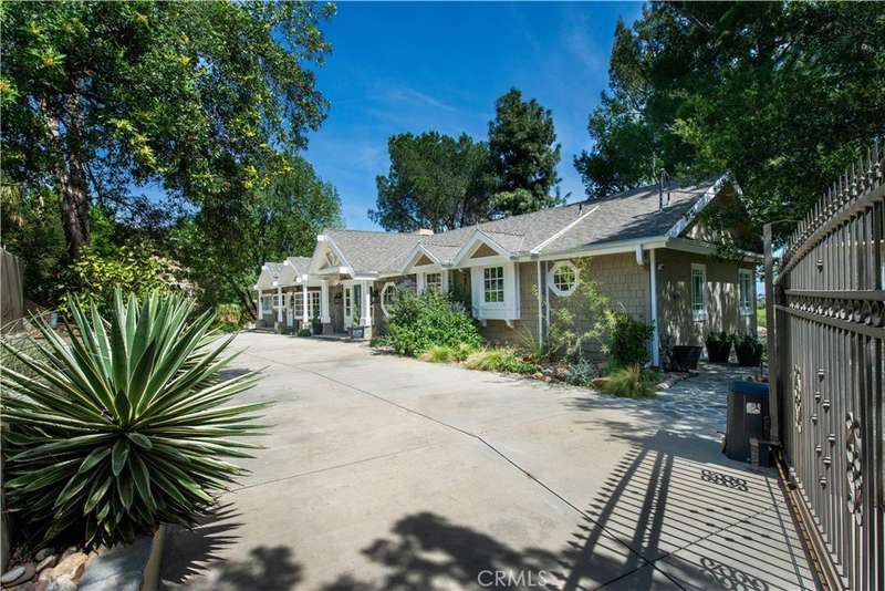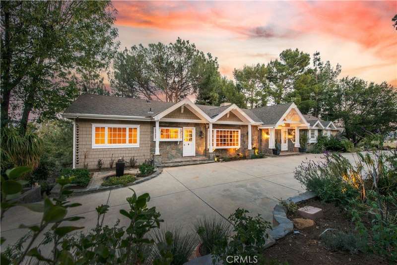 Discover an exquisite hidden gem tucked away in the picturesque hills of Chatsworth—an unparalleled retreat offering the ultimate in privacy, serenity, and natural beauty. This rare & unique executive compound is a dream come true for those seeking a tranquil escape w/breathtaking 270-degree panoramic views of LA. Situated on an expansive 26,461 sq/ft lot, this stunning property is a masterpiece of thoughtful design & modern luxury. Newly landscaped grounds are adorned w/native plants, enchanting landscape lighting, calming fountains & peaceful walking paths, all meticulously maintained w/an efficient drip irrigation system. A grand horseshoe driveway, secured by double electric gates, provides ample space for over a dozen vehicles, along with additional room for recreational toys.Blending modern farmhouse aesthetics with classic Nantucket charm, this home is designed for both sophistication & comfort. The custom front door opens to a captivating foyer filled w/natural light from abundant windows & glass sliders, all framing spectacular views. The open floor plan flows seamlessly, creating an inviting ambiance that perfectly complements the stunning surroundings. The main level boasts spacious living room & family room, separated by a striking double-sided fireplace, while a formal dining room, complete w/built-in cabinetry & patio access, offers flexibility as fourth bedroom or office. The chef’s kitchen is a culinary delight, featuring high-end appliances, custom cabinetry & a layout that effortlessly connects to the family room. The primary suite is a luxurious retreat w/private patio access, a generous walk-in closet & a spa-like en-suite bath showcasing a separate shower, soaking tub, dual sinks & custom cabinetry. A second bedroom, along with a beautifully designed laundry room equipped w/ample counter space, custom cabinets & a built-in wine fridge, complete the main level. Down a discreet staircase, the lower level unveils private sanctuary w/a third bedroom or in-law suite, offering its own separate entrance, walk-in closet, en-suite bath, and private patio access—perfect for guests or extended family. The detached garage and additional storage shed present endless possibilities, whether for an ADU, creative studio, home office, or private gym. This truly one-of-a-kind estate offers unmatched beauty, seclusion & versatility, making it a rare and remarkable find. Experience the magic of this stunning retreat in person—your dream sanctuary awaits.