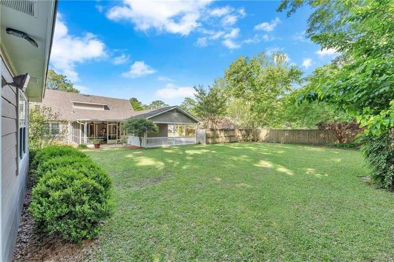 Location, Location, Location! This home truly has it all-space, style, upgrades, and unbeatable access to everything the Gulf Coast has to offer! Imagine the possibilities with this versatile and inviting floor plan, featuring 3 large bedrooms, 2.5 bathrooms, and a large flexible family room that can easily serve as a 4th bedroom. Need even more space? You'll love the huge detached building-perfect for a man cave, home office, gym, or art studio. The fortified roof offers peace of mind during rainy days, while high-quality windows and fresh interior paint fill the home with natural light. The beautifully updated kitchen is a dream, with granite countertops, a granite island, stainless steel appliances, and loads of storage. All three bathrooms feature granite finishes for a cohesive, upscale feel. Your first-floor master suite offers comfort and functionality with dual walk-in closets and separate his-and-her sinks. Other recent upgrades include: New lighting and ceiling fans, brick front exterior with gorgeous vinyl siding, woodwork for low maintenance, gutters and gable fans, tiled and beautiful 12x20 screened in patio w/ ceramic flooring, aluminum framing with two decorative ceiling fans. Also covered outside patio perfect for morning coffee or evening relaxation. New plank flooring in downstairs area/porcelain tile. Step outside to your private, fenced backyard with serene pond views and plenty of space to store your boat or toys. Whether you're entertaining or just unwinding, this outdoor space offers privacy and potential. Front porch newly painted/new lighting fixtures/new shutters. Prime location-minutes from Dauphin Island beaches, I-10, Airbus, I-65, downtown Mobile, and a short drive to Mississippi. This is the total package-don't miss your chance to call it home! Buyer to verify all information during due diligence.