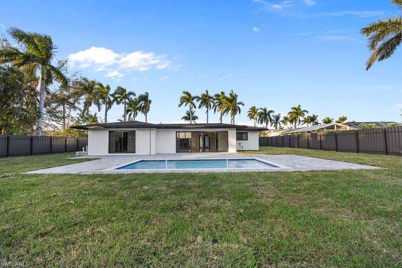 Welcome to 112 Bayshore Drive, a beautifully renovated single-family home located in one of Cape Coral's most desirable neighborhoods. This spacious three-bedroom, two-bathroom residence offers 1,681 square feet of living space and features a split-bedroom floor plan for added privacy and comfort. Inside, you'll find a bright and open great room layout with modern finishes throughout. The home has been thoughtfully updated with new flooring, fresh paint, and contemporary fixtures. The kitchen is equipped with a sleek cooktop, wall oven, microwave, dishwasher, and plenty of built-in cabinetry, making it ideal for everyday living and entertaining. Step outside and enjoy the ultimate Florida lifestyle with your own private. The backyard provides ample space for relaxing or hosting guests, and the southern rear exposure ensures all-day sunshine by the pool. Additional features include a two-car attached garage, laundry area in the garage, ceiling fans, and central electric cooling. This home is also pet-friendly with approval, making it perfect for the whole family. Located just minutes from the Cape Coral Yacht Club and Cape Harbour, this property offers convenient access to waterfront dining, boating, and entertainment. It's also close to shopping, restaurants, and provides easy access to Cape Coral Parkway and the Cape Coral Bridge for quick trips to Fort Myers and the nearby beaches.