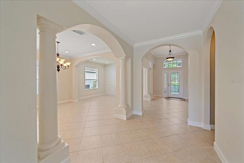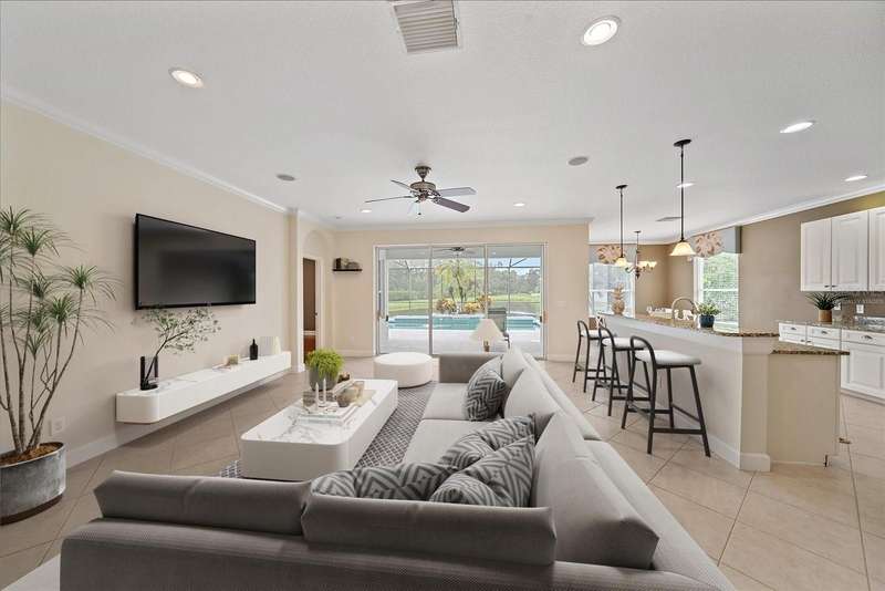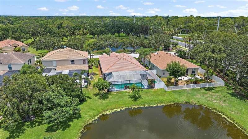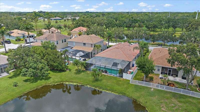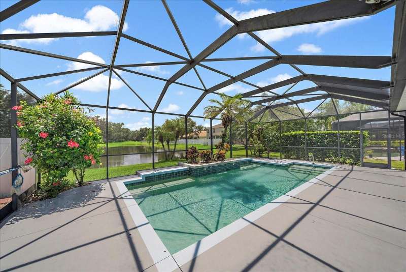 One or more photo(s) has been virtually staged. Live Like You're Always on Vacation – Own This Stunning Former Model Pool Home! Freshly painted by the owners! Step into the Florida dream lifestyle with this impeccable former Centex MODEL HOME — where elegance meets everyday comfort in the heart of convenience and tranquility. Boasting 3 spacious bedrooms, 3 full bathrooms, and 2,264 sq ft of thoughtfully designed open-concept living, this light-filled beauty is loaded with premium upgrades and tropical flair. Private Poolside Paradise Unwind in your oversized pool with a soothing raised water feature, surrounded by lush palm trees and blooming hibiscus — all set within your private screened-in lanai overlooking a peaceful pond. With no front or rear neighbors, you’ll enjoy privacy and serenity from every angle. Luxury Model Home Finishes Designed to impress, this home features: • Soaring 10-foot ceilings and elegant crown molding • Leaded glass front door, decorative columns, and designer wall treatments • Double walk-in closets with custom built-ins in the primary suite • Gourmet kitchen with brand new (2024) stainless steel appliances • Freshly painted pool deck, front entry, and garage floor • New HVAC system (2021) and a durable concrete tile roof (40–50 year lifespan) Peace of Mind Comes Standard This home has never flooded, sustained no storm damage, and comes with hurricane shutters for added security. Low-HOA Living in a Prime Location Located in a well-maintained community with no CDD fees and low quarterly HOA dues ($297), which cover property management and community upkeep. Minutes from: • Creekwood Park with one of the county’s largest dog parks and playgrounds • Costco, Lowe’s, Home Depot, and top-rated restaurants • Golf courses, shopping centers, and easy I-75 access (within 10 minutes) Whether you’re looking to relocate, invest, or retire in comfort, this is your chance to own a rare former model home on a premium lot in the heart of Florida’s Gulf Coast.