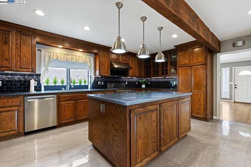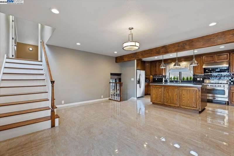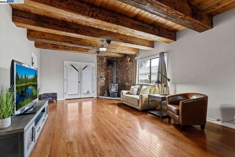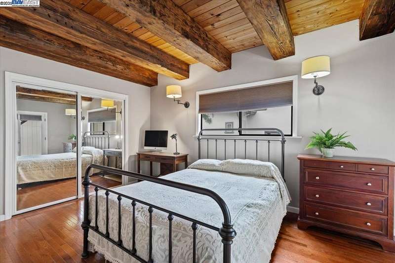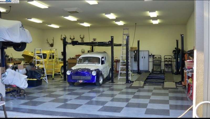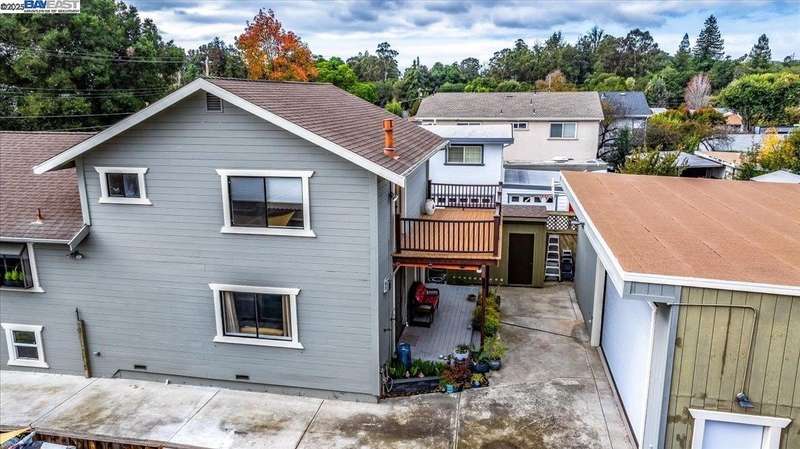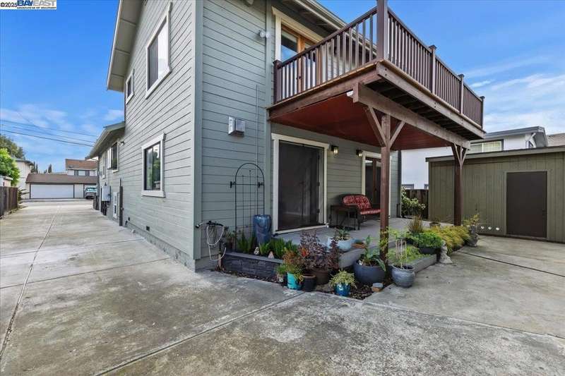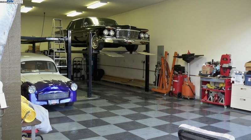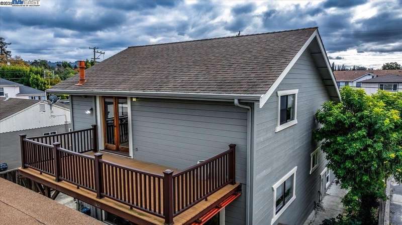 A Hidden Car-Collector's Jewel awaits! An elegantly expanded 1920's Craftsman complete Remodel with 40x40 10-Car Shop/Garage, gated paved driveway sideyard with concrete basement. Modern comfort meets preserved vintage charm from top balcony to basement floor! Greeted with a covered brick porch view, enter the Formal Living room with fireplace, hardwood floors that overflow into a versatile bedroom/den with full closet & rich wood French sliding doors. The oversize Kitchen remodel & dining area features large tile flooring, bright windows, large stainless steel island, stainless steel appliances, gas range w/ hood ventilation & expansive granite slab with custom cabinetry and storage. Tip toe up to the Primary Suite with balcony & luxurious bath or tip toe down to the expanded Family Room level with spacious bedroom & remodeled Bath 2. Wood french doors lead through the covered porch & open up to the 40x40 appx fully loaded open span shop/garage equipped with 20x11' commercial grade metal roll up door, insulated finished walls with appx 14' height, 220-V, air compressor w/ airline hookups & more! The versatile layout maximizes your investment for work-home life to multi-general living & more. Centrally located near Hwy 580, minutes to both Castro Valley & Hayward amenities.