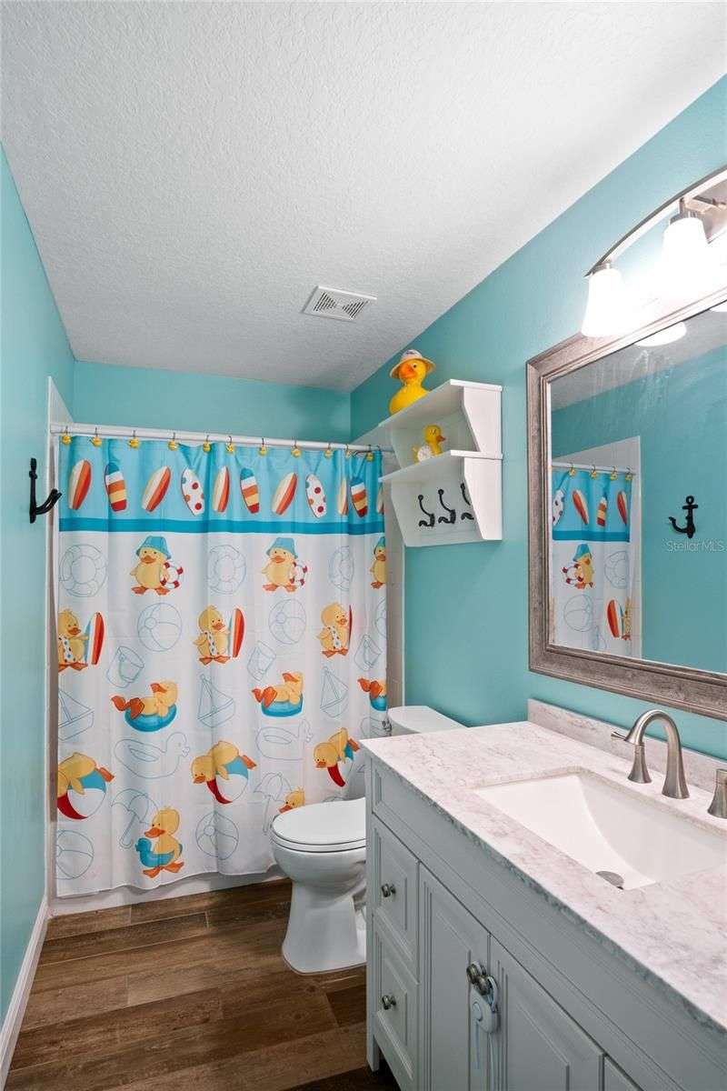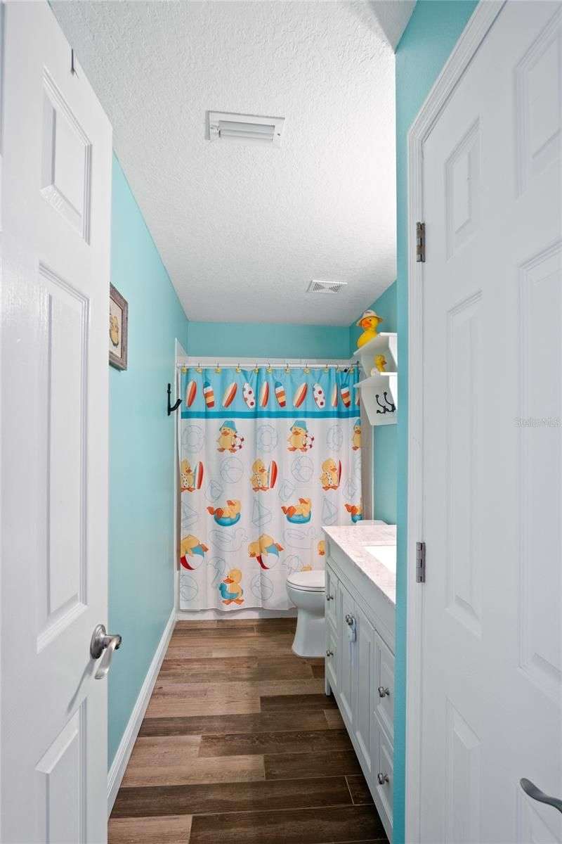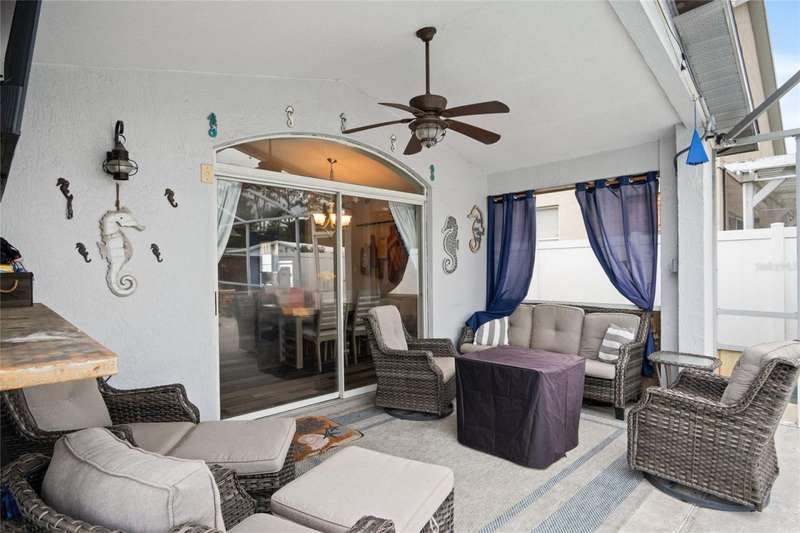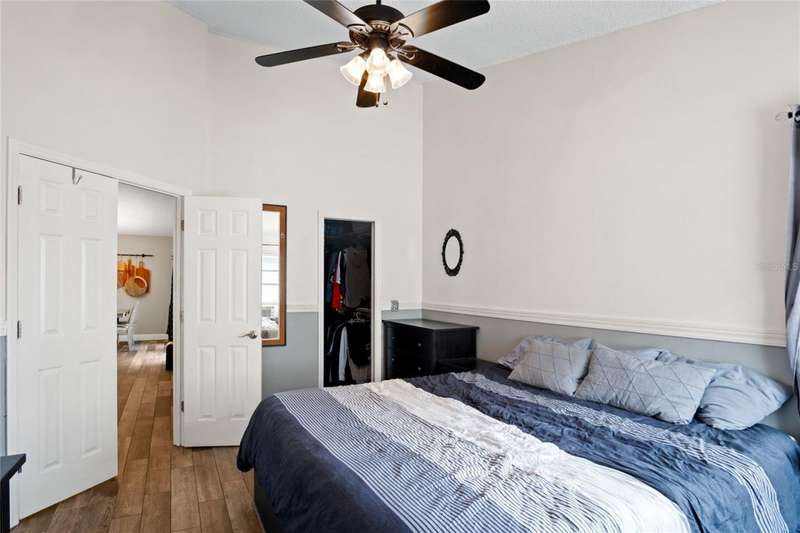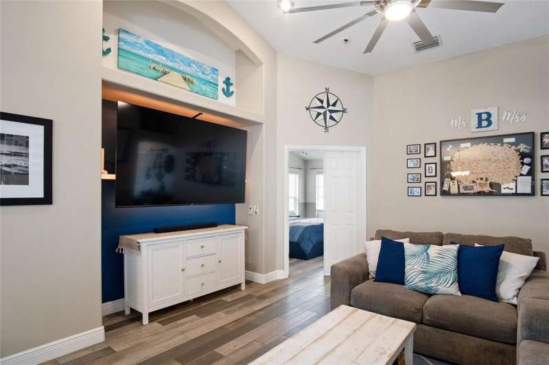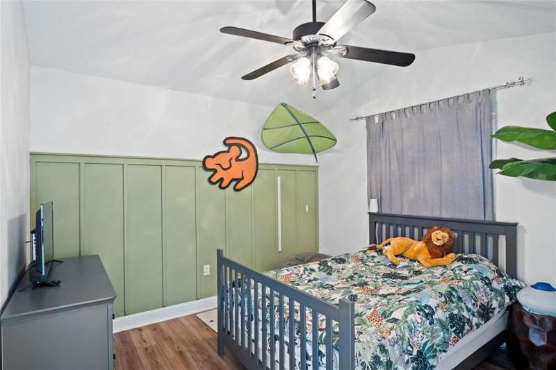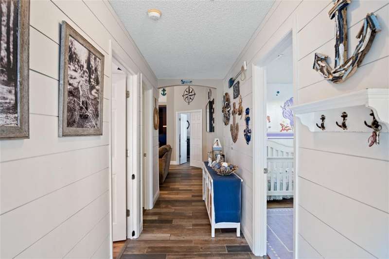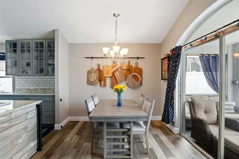 Welcome to this beautifully updated and meticulously maintained 4-bedroom, 2-bathroom pool home located in the desirable Fairways Lake Estates. With a thoughtful blend of style, functionality, and comfort, this home is move-in ready and ideal for use as a primary residence, vacation getaway, or short-term rental. Step inside and enjoy the many recent upgrades that elevate this home's appeal, including a fully remodeled primary ensuite and guest bathroom (2024), new AC system (2023), and wood plank tile flooring installed throughout most of the home (2022). The kitchen was tastefully remodeled in 2021 and now features stainless steel appliances, granite countertops, a stylish backsplash, coffee bar, ample storage, and glass cabinets perfect for displaying your favorite dishware-all overlooking the covered lanai and screened-in pool. Additional updates include a new roof (2019), resurfaced pool (2018), vinyl fencing for privacy (2018), and a new water heater (2014). The air-conditioned garage offers a unique option for a home office or gym, perfect for remote workers or hobbyists. Inside, enjoy charming details like shiplap paneling, chair rail accents, built-in shelves in the guest bedroom, and custom touches throughout. The open living and dining area is ideal for entertaining family and friends, while the outdoor space provides a peaceful oasis to relax poolside or dine al fresco under the lanai. Fairways Lake Estates offers wonderful community amenities including a golf course, tennis and basketball courts, a playground, lake access for fishing, and a community pool-all with a low HOA fee. Conveniently located just minutes from Disney World, H2O Water Park, Margaritaville, shopping, dining, and medical facilities. Don't miss this opportunity to own a stylish and functional home in one of Central Florida's most sought-after communities!