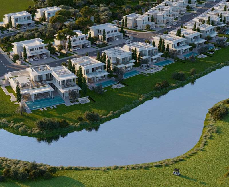 Modern riverside living conceived with a keen eye on sustainable design and seamless connection to the outdoors, is exemplified by this high end architecturally designed six bedroom Residence. A lusciously landscaped side entry path with a bespoke water feature welcomes you to the Villa ensuring your absolute comfort and privacy. Limassol Greens is the largest master plan community development on the island. A residential, golf and spa resort where life makes joyous sense, Limassol Greens is adjacent to The City of Dreams Mediterranean Casino Resort, just five minute drive from Lady’s Mile Beach and ten minutes from Limassol Marina and Limassol’s city centre, while enjoying easy access to the highway and educational, health and shopping facilities in Limassol.