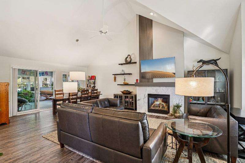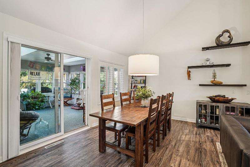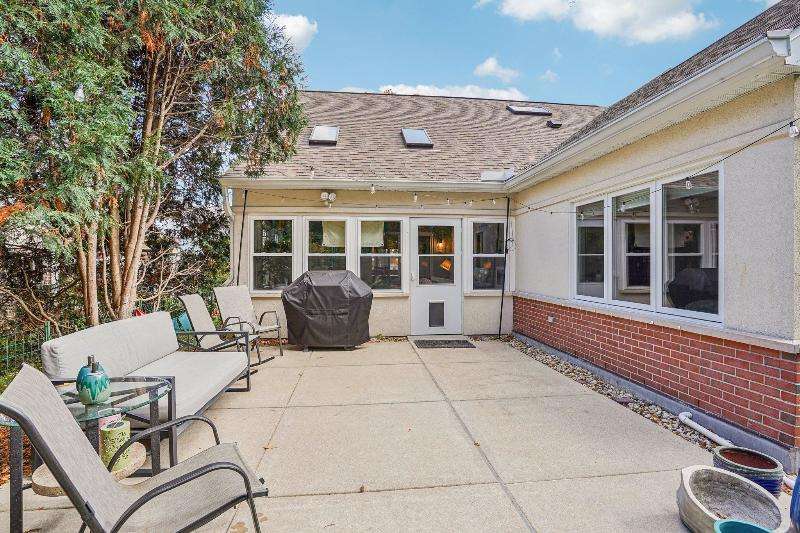 SHOWINGS START OCTOBER 26TH AT 11:00. Highly desirable west-side Madison 55+ condo community in a premium location near West Towne Mall. This zero-entry, single-level condo offers 3 bedrooms, 2 full baths, and an open layout w/ vaulted ceiling and cozy gas fireplace. A sun-filled three-season room overlooks beautiful back yard w/ mature trees--perfect for relaxing, reading, or enjoying a morning coffee. Step outside to a private patio ideal for grilling or listening to the birds. Features a spacious updated kitchen with SS appliances, large living area, 2-car garage, and massive open basement for rec space or storage. Extensive list of updates. Wonderful association with well-maintained grounds and a peaceful setting close to shopping, dining, and amenities.