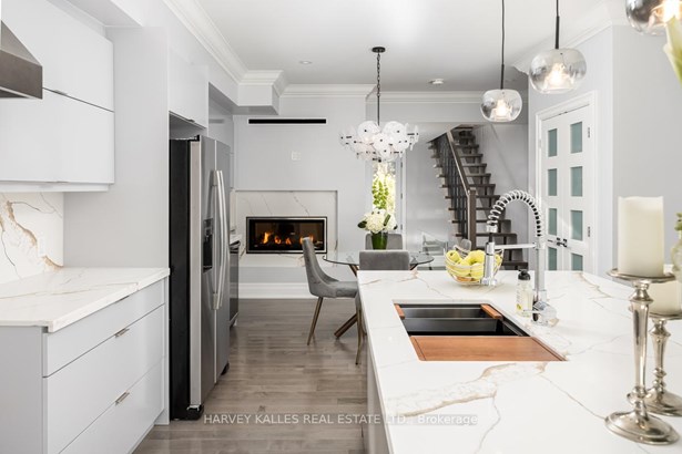 Sleek and modern renovation nestled in one of the centre core's most desired pockets, Summerhill. Easy walking distance to many of Toronto's best shopping and restaurants with mere steps to Ravine/parks and the Subway. Completely renovated top to bottom. Stunning kitchen offering premium stainless steel appliances, large quartz center island, quartz backsplash and offering tons of storage. Dramatic 2 sided fireplace offering style and ambiance to both the living room and the dining room. Walk out to deep garden and secure parking. Second floor offers a spacious 2nd bedroom, a den/office that could easily be made into a third bedroom. The third floor primary oasis is the perfect retreat. Large primary bedroom and ensuite marble bath. Underpinned basement provides an additional family room and bathroom. Whether entertaining friends or relaxing by a fireplace after full day, perfection awaits. One of the deepest lots on the street. (id:6370)