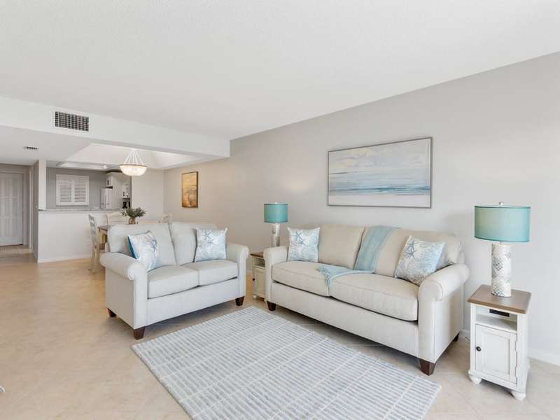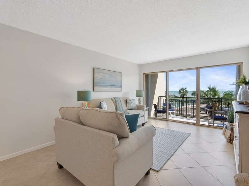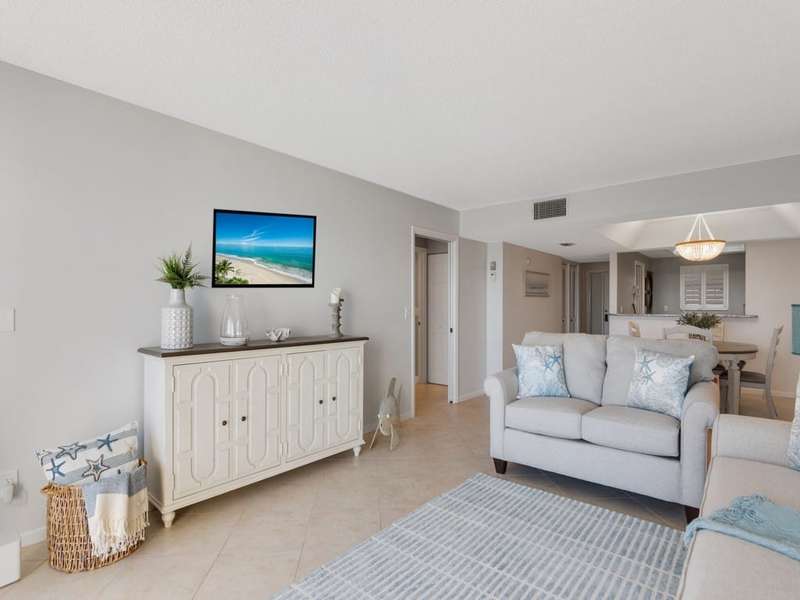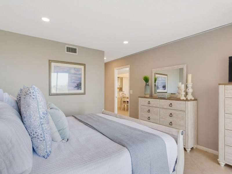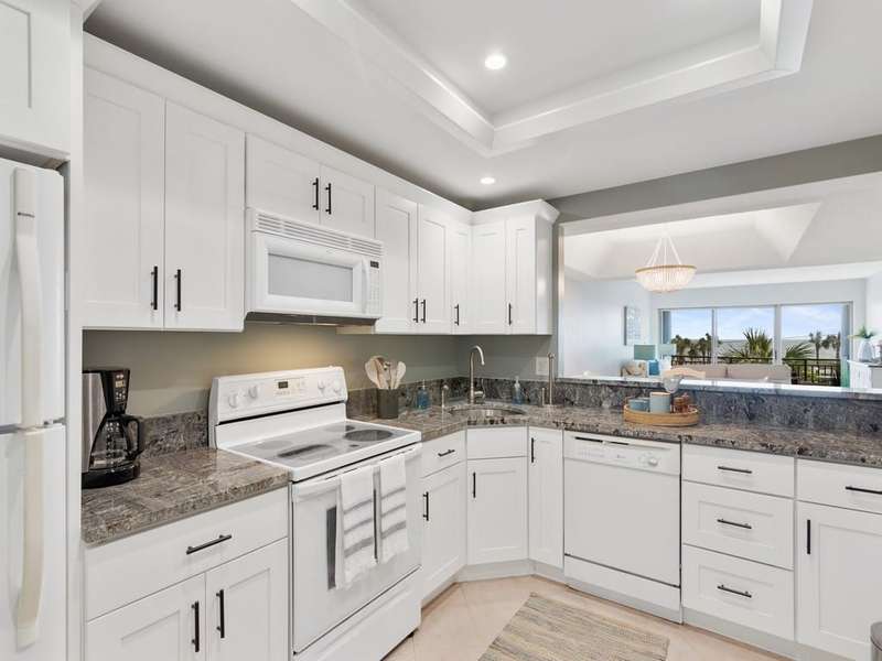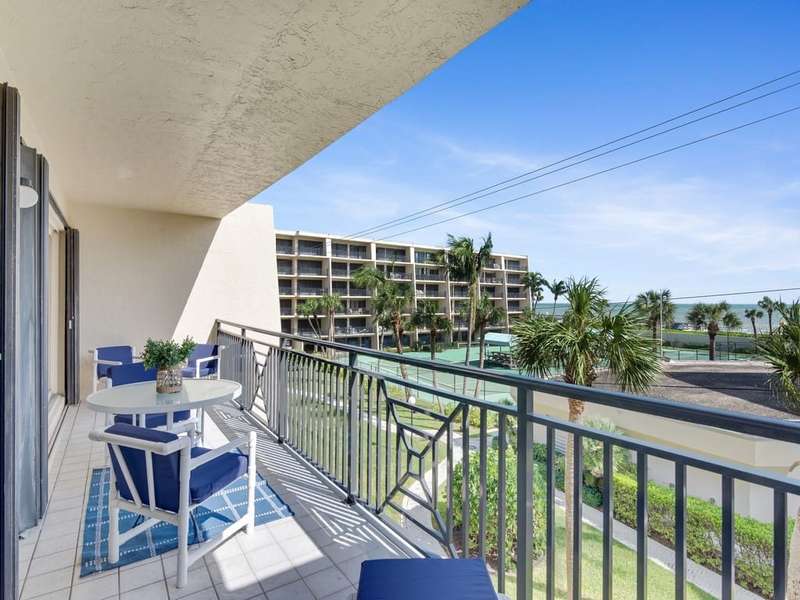 This two bedroom two bath Ocean View condo in th Racquet Club exemplifies beach chic with the beautiful furnishings to match the view of the Ocean. Zip across the street to cool down in the sea once you have finished your pickleball or tennis workout. Relax on the spacious porch, walk to the shops and restaurants, or read next to the soarkling pool. This rental is ready for your next vacation! Sizes are approx./subject to error. Property and contents represented in photos subject to change.