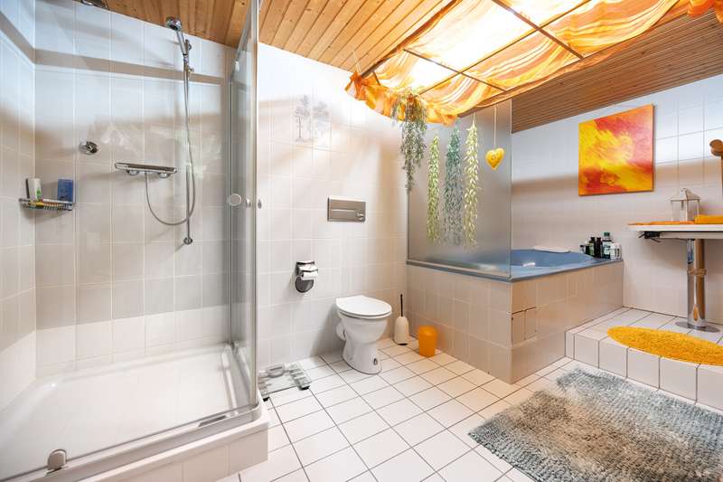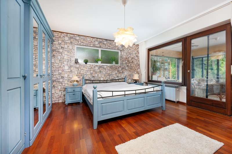 Detached family home with granny apartment, large garden and versatile usage potential This spacious detached house, built in 1984, impresses with a living space of approx. 301.61 m² on a well-kept plot of around 1,440 m². The central yet pleasantly quiet location and the family-friendly neighborhood make the property an attractive home with plenty of design freedom. The house is located in a mature residential area and is particularly suitable for families who value comfort, flexibility and quality of living thanks to its well thought-out room layout and furnishings. Living concept over three floors The living areas extend over three floors. The upper floor and attic form one residential unit with around 252 m² of living space: On the upper floor, you will find a spacious, open-plan living and dining room with a fireplace, a kitchen, an office, a bathroom and a bedroom - one of which has direct access to the conservatory, where another fireplace creates a cozy atmosphere. From the living area with its large window fronts, you can access the approximately 60 m² terrace, which offers impressive views. The top floor comprises a centrally located, open-plan kitchen, a spacious bathroom and three bedrooms. Two of the rooms have direct access to the large balcony. Due to the floor plan, it would also be possible to divide the property into two separate residential units. There is also further expansion potential on the top floor. Granny apartment on the first floor The approx. 49 m² granny apartment on the first floor offers an open-plan living and kitchen area, a bedroom and a modern bathroom with a walk-in shower. It is ideal as a rental property, home office or for several generations to live together. Condition & surroundings The property is in a very well-kept condition with a solid building structure and contemporary furnishings. The spacious room layout creates an open, pleasant living atmosphere. The surrounding area is friendly, family-oriented and has an excellent infrastructure: schools, shopping facilities and leisure activities are in the immediate vicinity. Conclusion: This house offers you plenty of space for individual living ideas - whether for a large family, living and working under one roof or as a multi-generational home. See the special charm and versatile potential of this property for yourself during a viewing. We look forward to hearing from you!