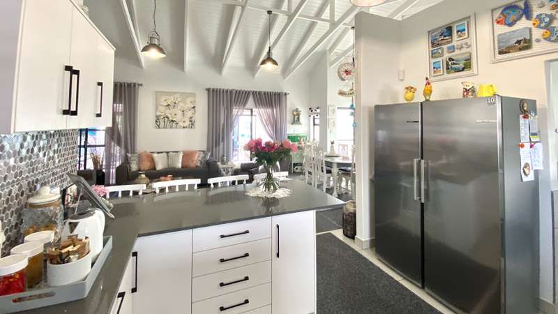 The Ultimate Coastal Lifestyle Awaits Imagine waking up to the sound of the ocean, with a pristine, sandy beach just a two-minute walk from your doorstep. This isn’t just a dream—it’s the reality of this stunning 3-bedroom home, nestled in a secure, access-controlled estate. Designed for those who crave space, privacy, and an effortless coastal lifestyle, this property has it all. Your Retreat from the Everyday Each of the three spacious bedrooms is a private sanctuary, complete with its own en-suite bathroom, ensuring a luxurious and comfortable experience for everyone. The heart of the home is a modern, well-appointed kitchen with a separate scullery, perfect for both everyday cooking and hosting memorable gatherings. No matter the weather, this home is built for entertaining. Enjoy sunny days with a classic outdoor braai, or bring the party inside to the cozy indoor braai for those breezy West Coast evenings. Unmatched Comfort and Convenience This home is packed with features that make life easy and secure: Two air conditioners for year-round climate control. A 5.5 KVA inverter system with solar panels provides peace of mind during power outages and helps lower your electricity bills. Electric and gas geysers ensure a constant supply of hot water. A private borehole offers water independence. Screens on all windows and fitted blinds provide privacy and natural ventilation. Automated gates and a separate alarm system offer enhanced security. Room for All Your Adventures with ample parking for up to four vehicles and a boat, you'll have all the space you need for your coastal toys. The large, well-maintained yard provides a secure, serene environment to relax or expand. Whether you're searching for a permanent family home, a holiday escape, or a smart investment, this property truly has it all. Don't let this beautiful home slip away. Contact us today for your private viewing and start living your coastal dream.