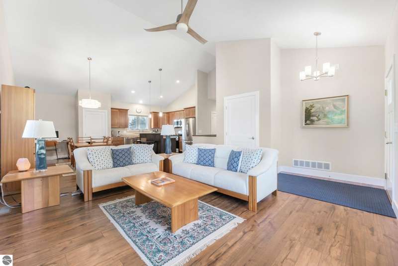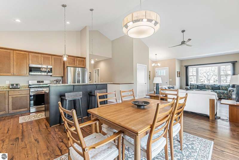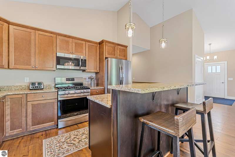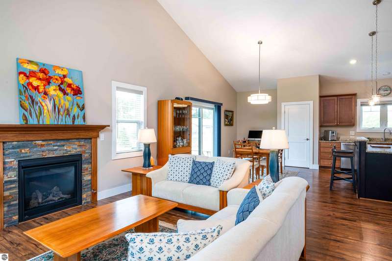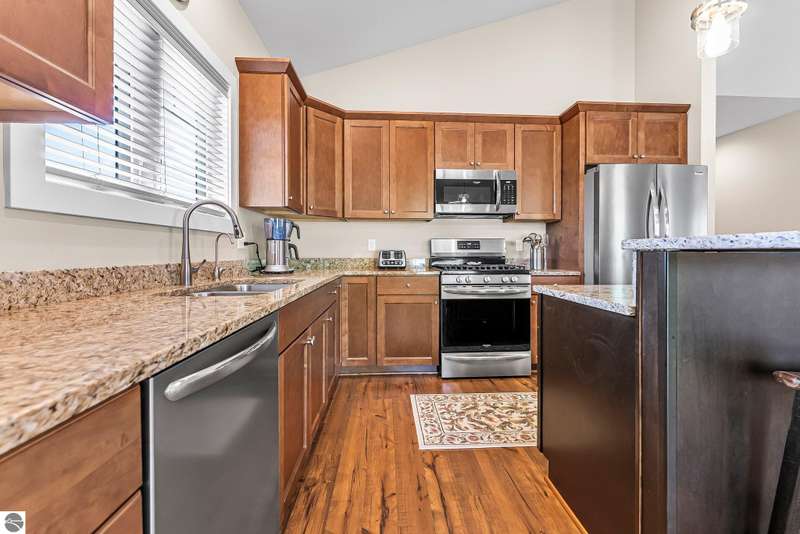 Discover this stunning, quality-built home in Traverse City's desirable west-side. Enjoy the open-concept living space with cathedral ceilings, a modern kitchen with granite and stainless steel, and a luxurious owner's suite. With 3 bedrooms, 2 baths, and a full basement ready for finishing, this home offers both comfort and potential. Relax on the deck, cozy up by the fireplace, and appreciate the convenient location near schools, amenities, and local favorites--brand new carpeting in the bedrooms. Don't miss the virtual tour!