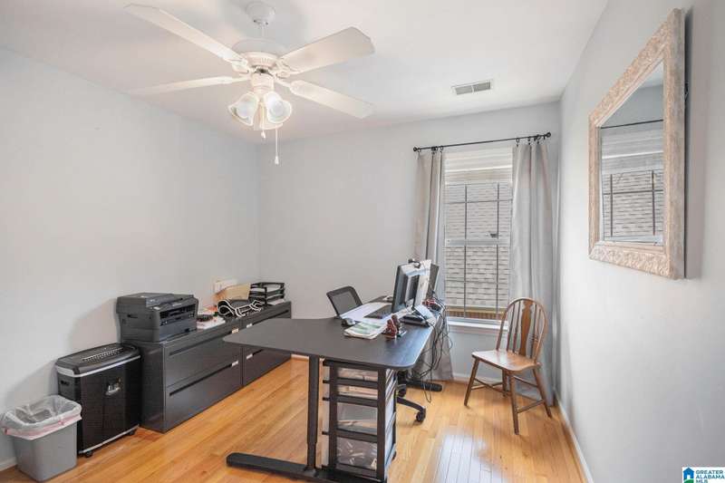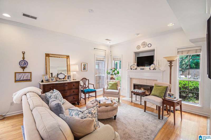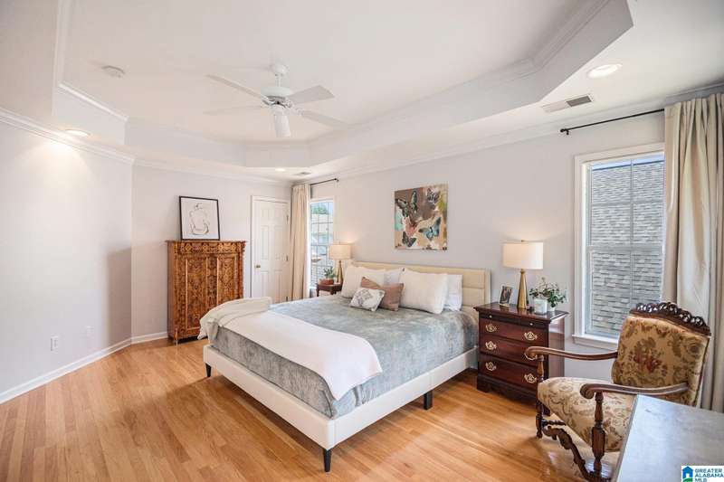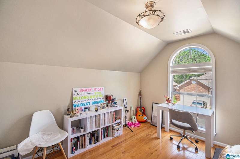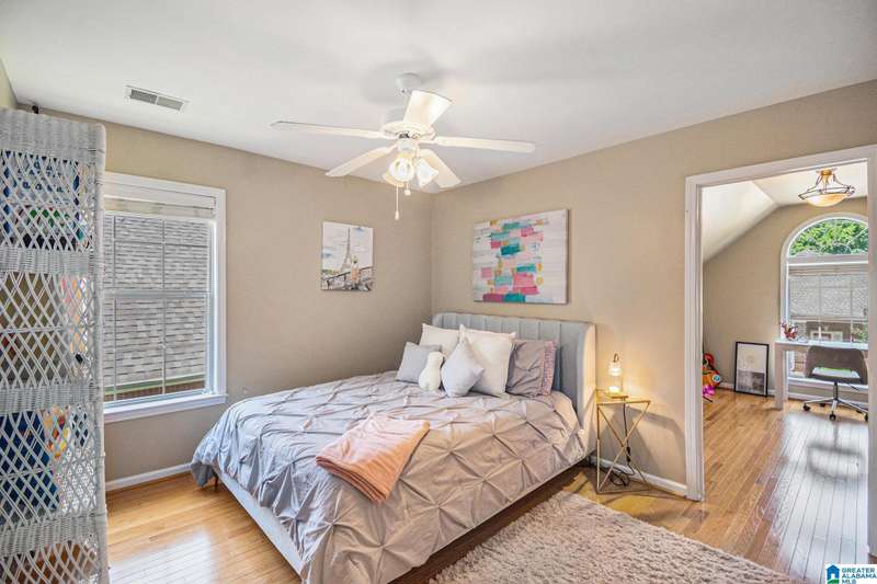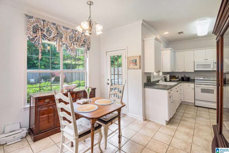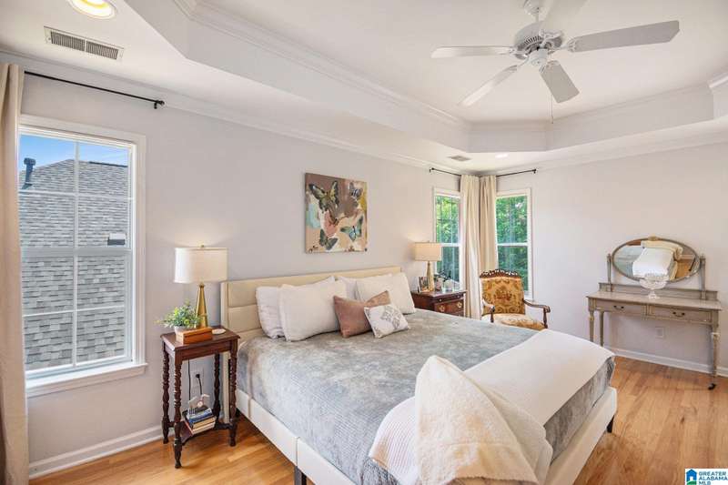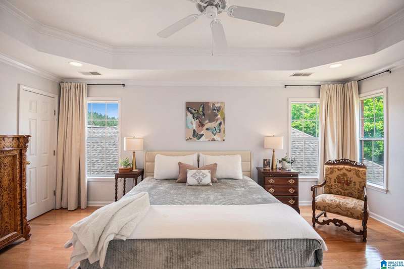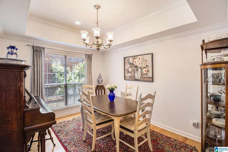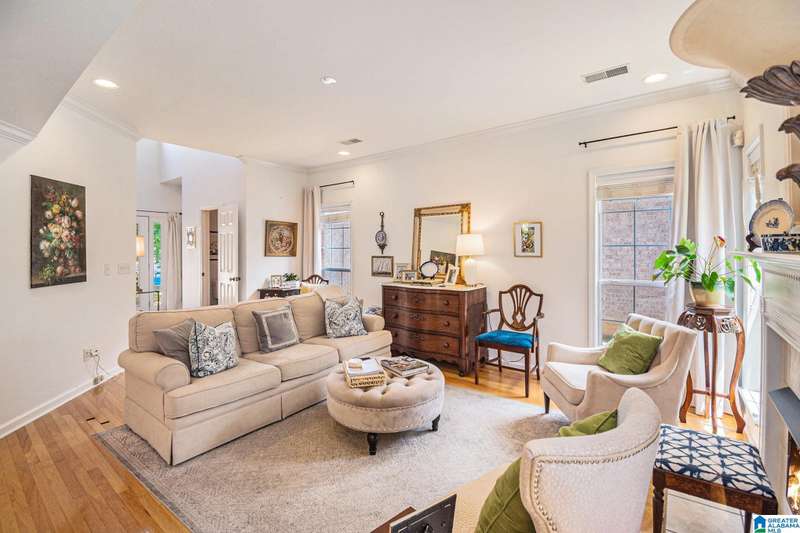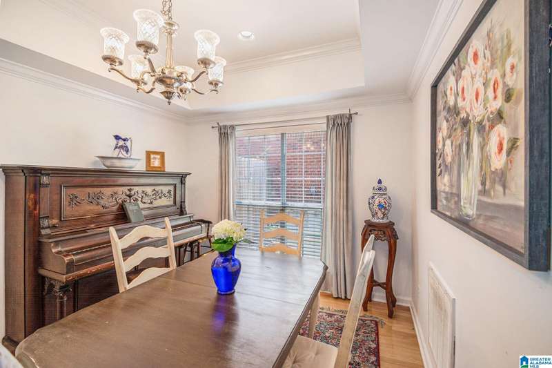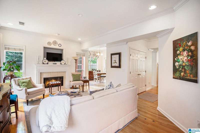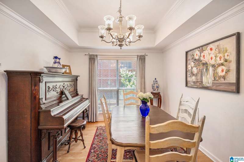 Charming colonial-style home in the heart of Bluff Park! Step into a stunning open foyer with cathedral ceiling and enjoy a spacious living room with a stone-tiled fireplace and abundant natural light. Classic hardwood floors flow throughout the main level. The kitchen offers plenty of cabinets, a new range, and a cozy eat-in area. The dining room features a beautiful tray ceiling. Upstairs are 3 bedrooms, including a master suite with tray ceiling, huge walk-in closet, jetted tub, and glass shower. The second bedroom includes a bonus room, and the third is used as a home office. A second full bath is also upstairs. Outside, relax on the covered and open porches overlooking a private, fenced backyard with lush southern perennials. A perfect blend of charm, comfort, and privacy!