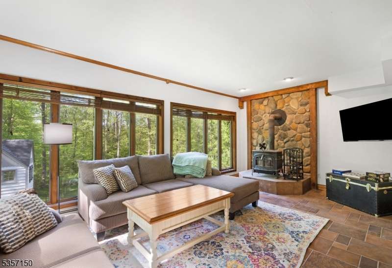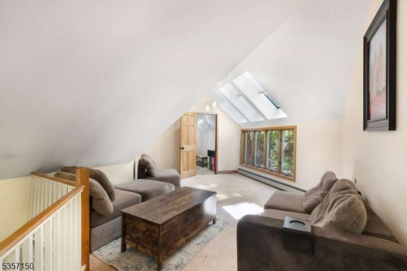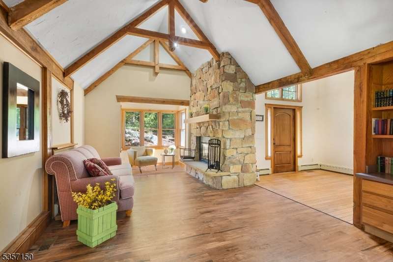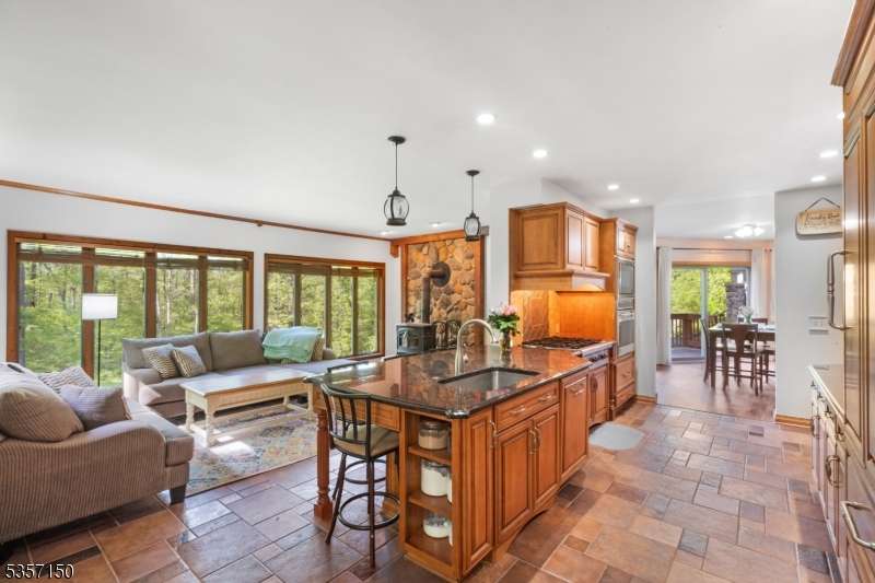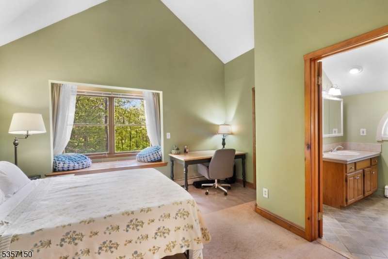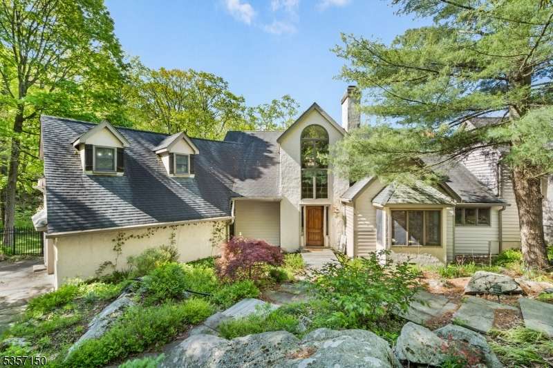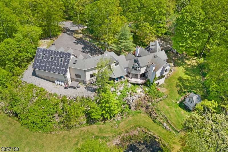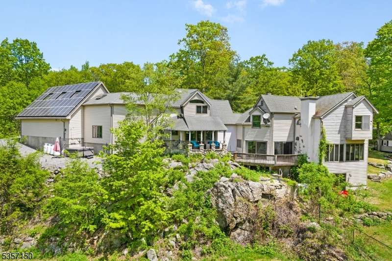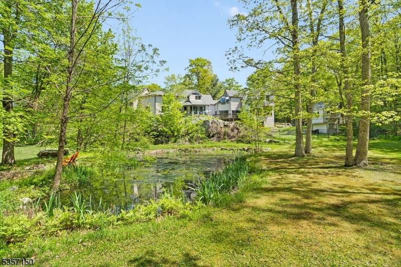 A one-of-a-kind, picturesque home in sought-after Sparta! Nearly 5 acres of lush, tree-lined privacy, surrounded by state land. This remarkable property is a combination of two separate living quarters. The left wing features a primary suite with en suite bathroom, two bedrooms, one full and one half bath, chef's kitchen with Wolf stove and laundry, dining room, a cozy living room centered around a grand stone fireplace, an outdoor breezeway to a designated one-car garage and finished basement space used as a bedroom with a separate home gym/office space. Accessible from main foyer, the right wing contains a second high-end kitchen, living room, second primary suite with an en suite bathroom, wet bar and wine fridge, second laundry unit and a generous bonus room with access to the three-car garage below. The key home highlights include a new septic system in 2020, whole house automatic generator, owned solar panels, a sprawling, tranquil pond in the backyard, treehouse with electricity, two Roth oil tanks, Wolf stovetop, central A/C, wood burning stove, stone fireplace and newer hot tub. Custom construction and thoughtful architecture make this home ideal for a variety of living arrangements, a private guest quarters or a separate au pair suite. This property is an extraordinary chance to own a whimsical woodland estate!