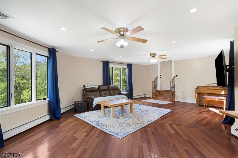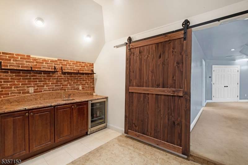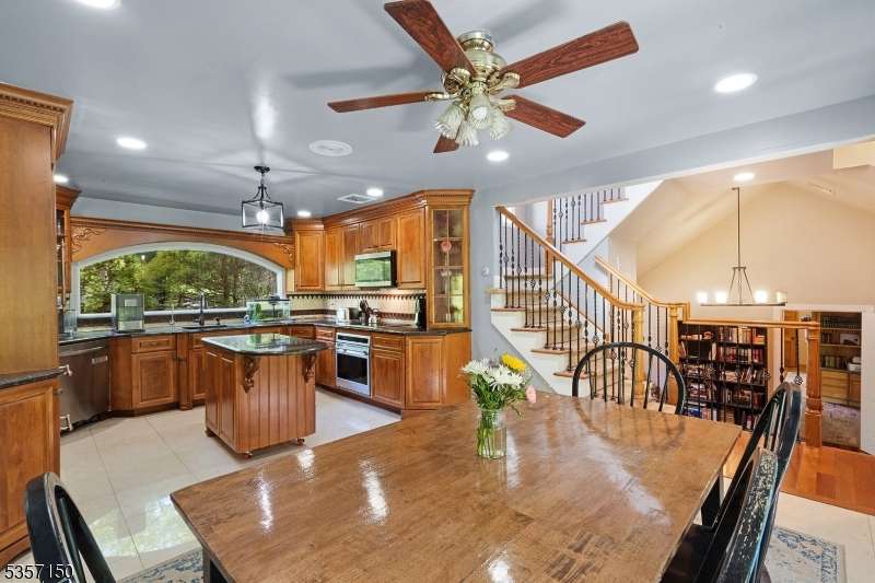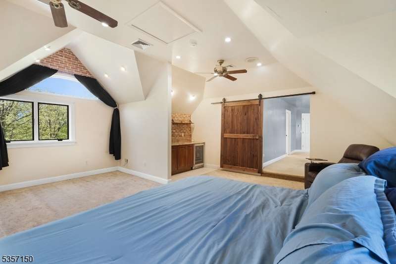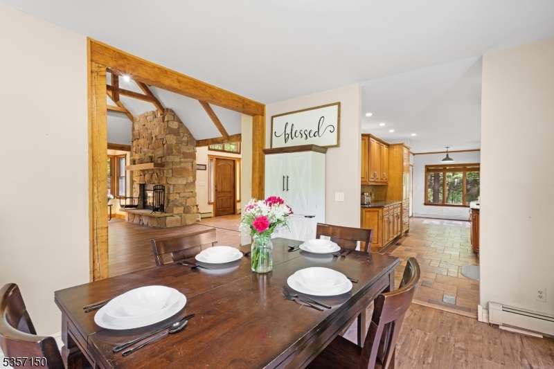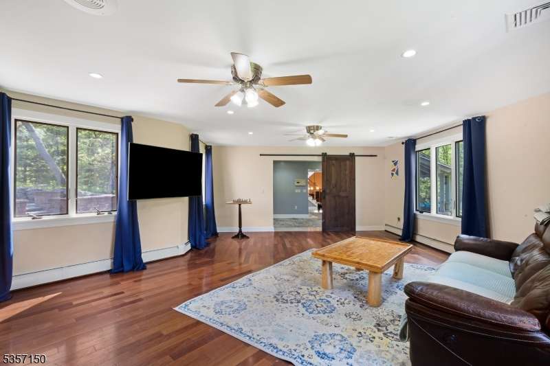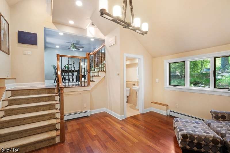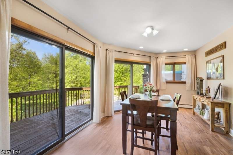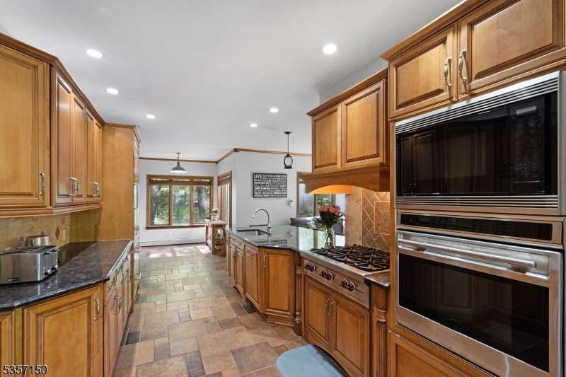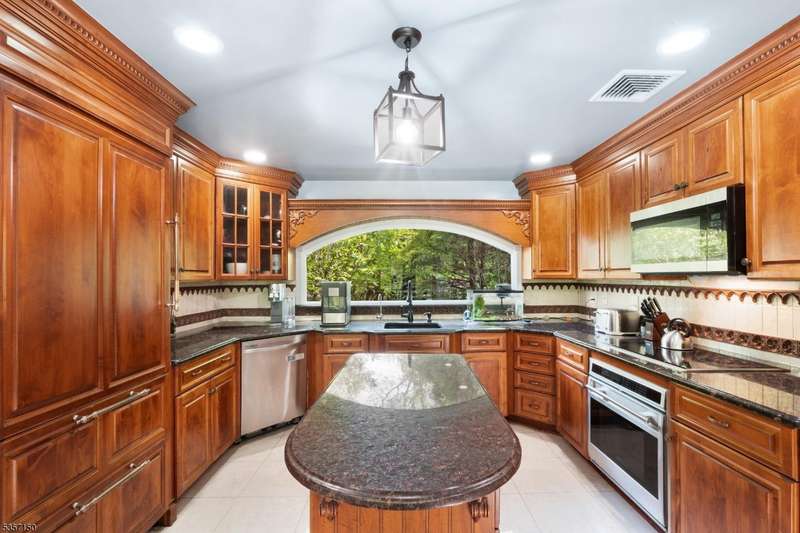 A one-of-a-kind, picturesque home in sought-after Sparta! Nearly 5 acres of lush, tree-lined privacy, surrounded by state land. This remarkable property is a combination of two separate living quarters. The left wing features a primary suite with en suite bathroom, two bedrooms, one full and one half bath, chef's kitchen with Wolf stove and laundry, dining room, a cozy living room centered around a grand stone fireplace, an outdoor breezeway to a designated one-car garage and finished basement space used as a bedroom with a separate home gym/office space. Accessible from main foyer, the right wing contains a second high-end kitchen, living room, second primary suite with an en suite bathroom, wet bar and wine fridge, second laundry unit and a generous bonus room with access to the three-car garage below. The key home highlights include a new septic system in 2020, whole house automatic generator, owned solar panels, a sprawling, tranquil pond in the backyard, treehouse with electricity, two Roth oil tanks, Wolf stovetop, central A/C, wood burning stove, stone fireplace and newer hot tub. Custom construction and thoughtful architecture make this home ideal for a variety of living arrangements, a private guest quarters or a separate au pair suite. This property is an extraordinary chance to own a whimsical woodland estate!
