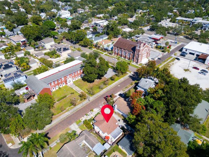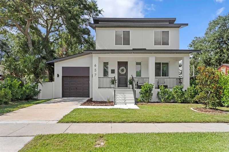 Welcome to your slice of St. Pete sunshine! This charming 2-bedroom, 1-bath home in the heart of the vibrant Euclid neighborhood perfectly blends modern updates with cozy Florida charm. Situated high and dry in an X flood zone with 50-foot elevation, you'll enjoy peace of mind and everyday convenience just minutes from downtown St. Petersburg's shops, dining, and waterfront parks. Step inside to a bright, open living space featuring luxury vinyl plank flooring throughout, modern white cabinetry, subway tile backsplash, and stainless-steel appliances in the cheerful eat-in kitchen. Thoughtful updates, including a newer roof (2015), A/C system (2018), water heater (2018), and updated electric and plumbing (2019), make this home move-in ready and worry-free. Outside, enjoy Florida living at its best with a covered front porch, artificial turf and lush landscaping in front, and a paver patio and sitting area in back, perfect for morning coffee or evening gatherings under the stars. There's also a one-car garage with additional street and side parking for guests. With low-maintenance features, modern upgrades, and prime proximity to Crescent Lake, trendy restaurants, and St. Pete's buzzing downtown core, this home offers an unbeatable combination of charm, convenience, and lifestyle.