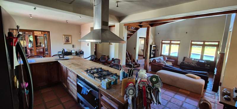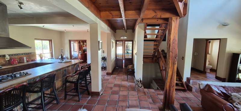 ** Exclusive Sole Mandate** Nestled on 2 hectares of picturesque land, this stunning Cape Dutch farm-style home offers a perfect blend of luxury, comfort, and serenity. Whether you're entertaining in the stylish bar area, relaxing by the pool, or enjoying panoramic views of the beautiful surroundings, this property provides the ultimate sanctuary for those seeking peace and indulgence. Property Highlights: ? Main House: 4 Bedrooms: Spacious and inviting, with a large master bedroom featuring an en-suite bathroom for your privacy and comfort. 2 Bathrooms: Modern and thoughtfully designed for convenience and luxury, with the main bedroom offering an en-suite. Impeccable Finishes: Tastefully designed with high-end finishes throughout for a refined living experience. ? Living Spaces: Open-Plan Entertainment Area: A generous space for entertaining, complete with a fully equipped bar, ideal for hosting friends and family. Breathtaking Views: Immaculate vistas from every room, allowing you to enjoy the natural beauty of your surroundings at all times. Butler’s Kitchen & Pantry: A seamless space for meal prep and organization, adding convenience to daily living. Separate Laundry Room: Practical and functional, making chores easier and more efficient. ???? Outdoor Features: Sparkling Swimming Pool: Perfect for cooling off on warm days or relaxing in the sun. 360° Panoramic Views: Enjoy the spectacular scenery across your expansive 2-hectare property. Rondavel-Style Outbuilding: A versatile space that can be used as guest accommodation, a private retreat, or a home office. ? Parking & Storage: Triple Garage: Provides secure parking and ample storage space for vehicles and belongings. ?? Additional Features: Safety & Security: Peace of mind with secure, safe living. Tranquil Escape: A true haven for those seeking relaxation and a connection with nature. This exceptional property offers a lifestyle of unparalleled luxury and peaceful living. Don’t miss the opportunity to make this dream home yours. Book your viewing today! Note: Pre-qualification required.