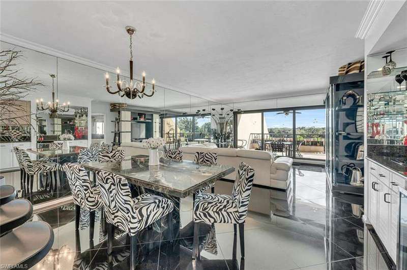 Step into sophistication with this stunningly updated condo in the heart of Pelican Bay's exclusive Hyde Park. Designed to impress, this residence boasts a breathtaking lake and lushly landscaped views, setting the stage for serene mornings and unforgettable evenings. Inside, sleek black tile flooring laid on the diagonal creates a bold, modern aesthetic effortlessly complemented by a custom mirrored wall that amplifies natural light and enhances the spacious ambiance. The seamless blend of contemporary style and timeless elegance makes this home one-of-a-kind. Beyond its striking interior, this condo delivers the unparalleled Pelican Bay lifestyle-private beach access, world-class dining, championship golf, and state-of-the-art fitness facilities. Whether you're seeking a serene retreat or an entertainer's dream, this Hyde Park gem is the ultimate expression of luxury coastal living.