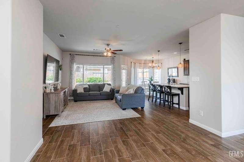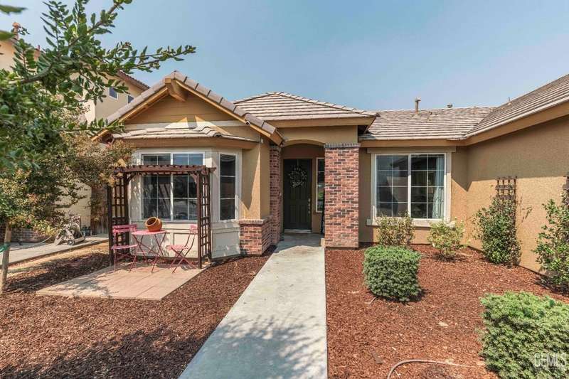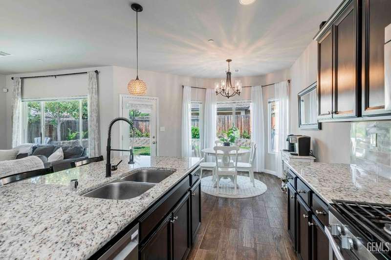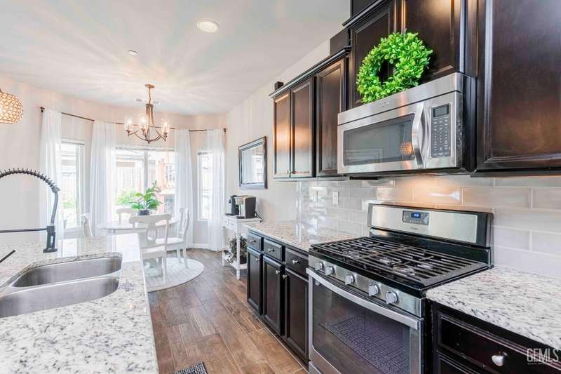 Move-in ready single-story home with 3 bedrooms, 2 baths and an open, versatile layout. The flexible bonus room near the entry is ideal as an office, playroom or den. The great room connects seamlessly to a gourmet kitchen w/ granite counters, a center island w/ sink, subway-tile backsplash, pendant lighting, stainless-steel appliances and ample cabinetry. The private primary suite offers a walk-in closet, dual-sink vanity, soaking tub and separate shower. Two additional bedrooms share a hall bath w/ dual sinks. A spacious laundry room w/ upper cabinets and direct garage access adds convenience. Wood-look tile flooring highlights the main living areas. Outdoors, relax under the covered patio w/ ceiling fan, gather around the fire pit, or enjoy the above-ground pool w/ elevated wood deck. The yard also features mature trees, raised planters and plenty of room for entertaining. Blending comfort, function and outdoor amenities, this home is a great opportunity in a desirable location.